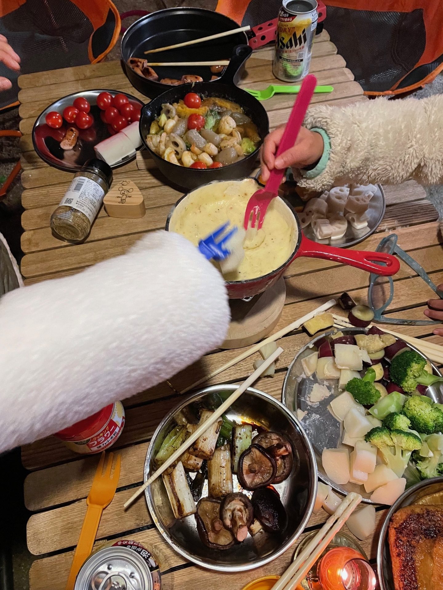 夜ご飯は、チーズフォンデュと焼き芋をしましたー!