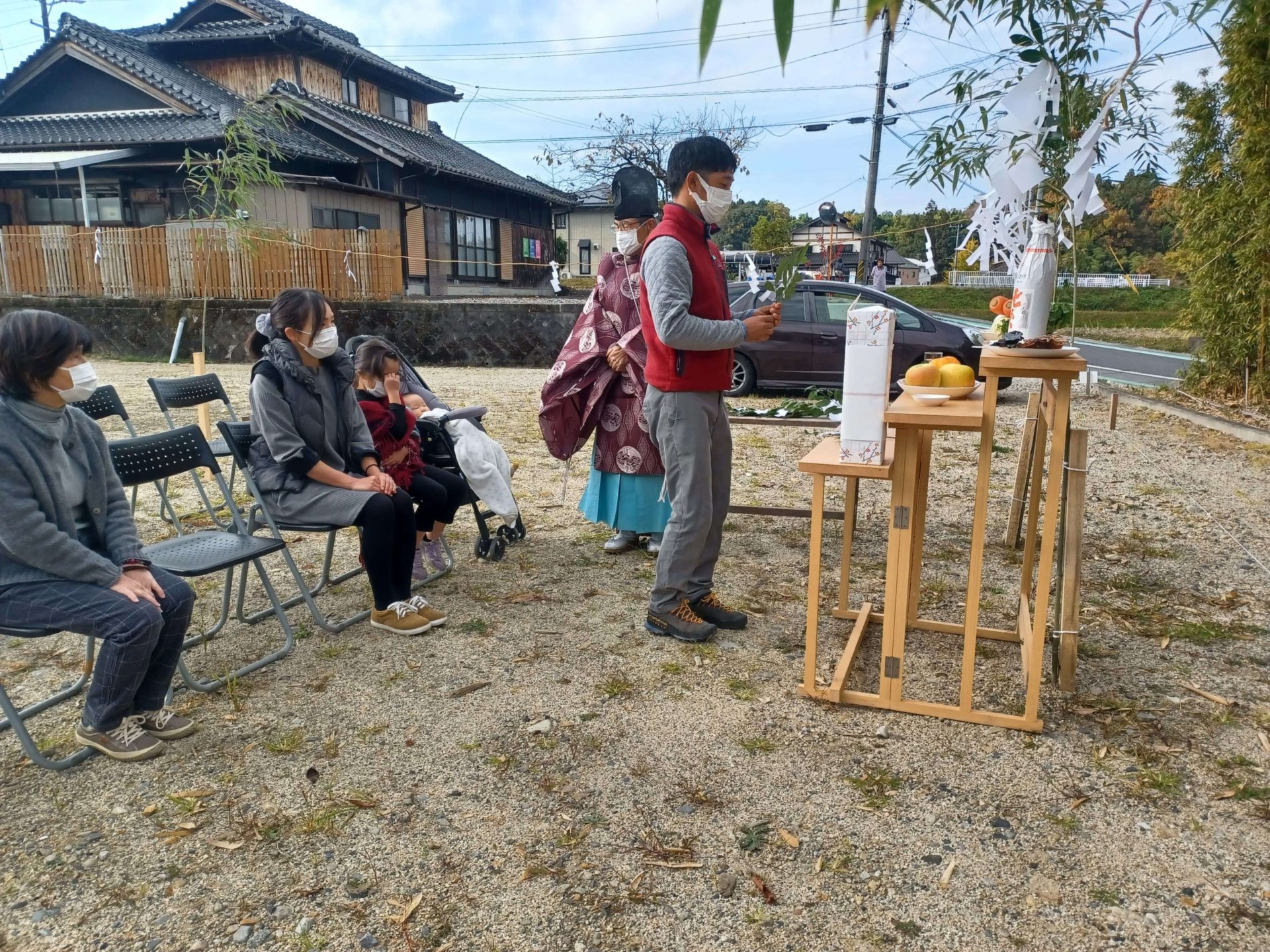 先日、中津川市内にて地鎮祭を行わさせていただきました。