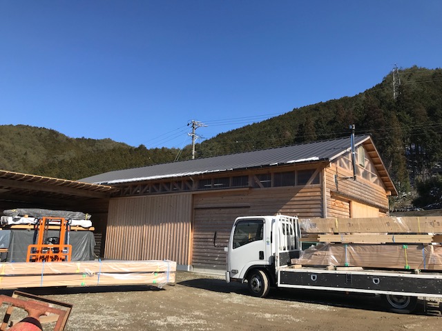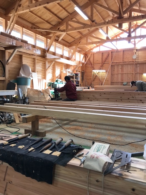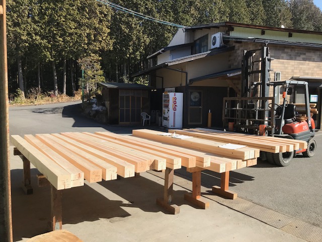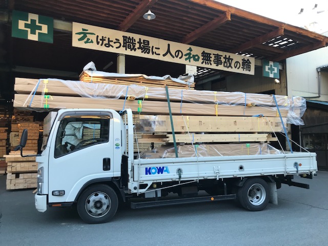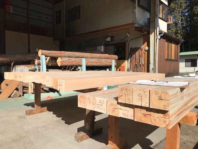 飛騨の大工さんの作業場へ運搬、刻んでいただきました。