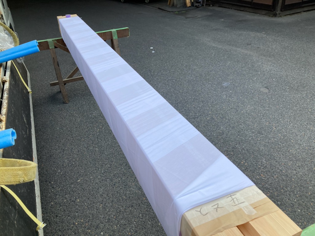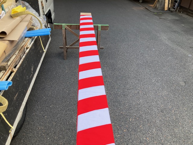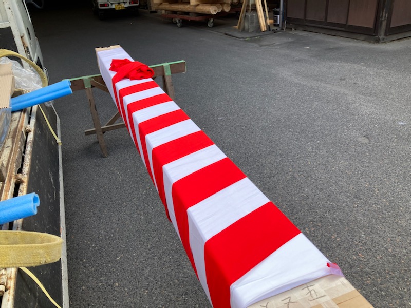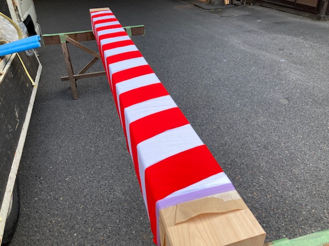 少し前のことですが、新築住宅の大黒柱に紅白を巻きました。