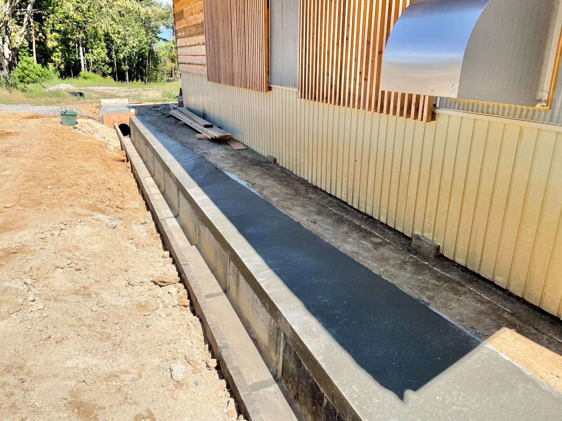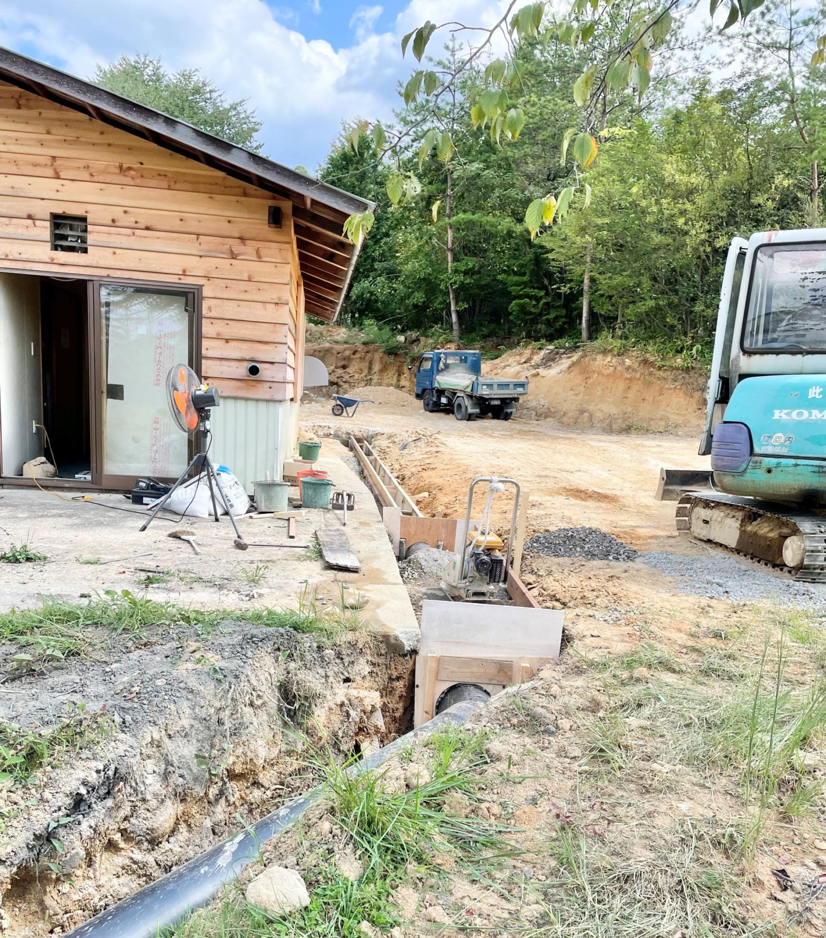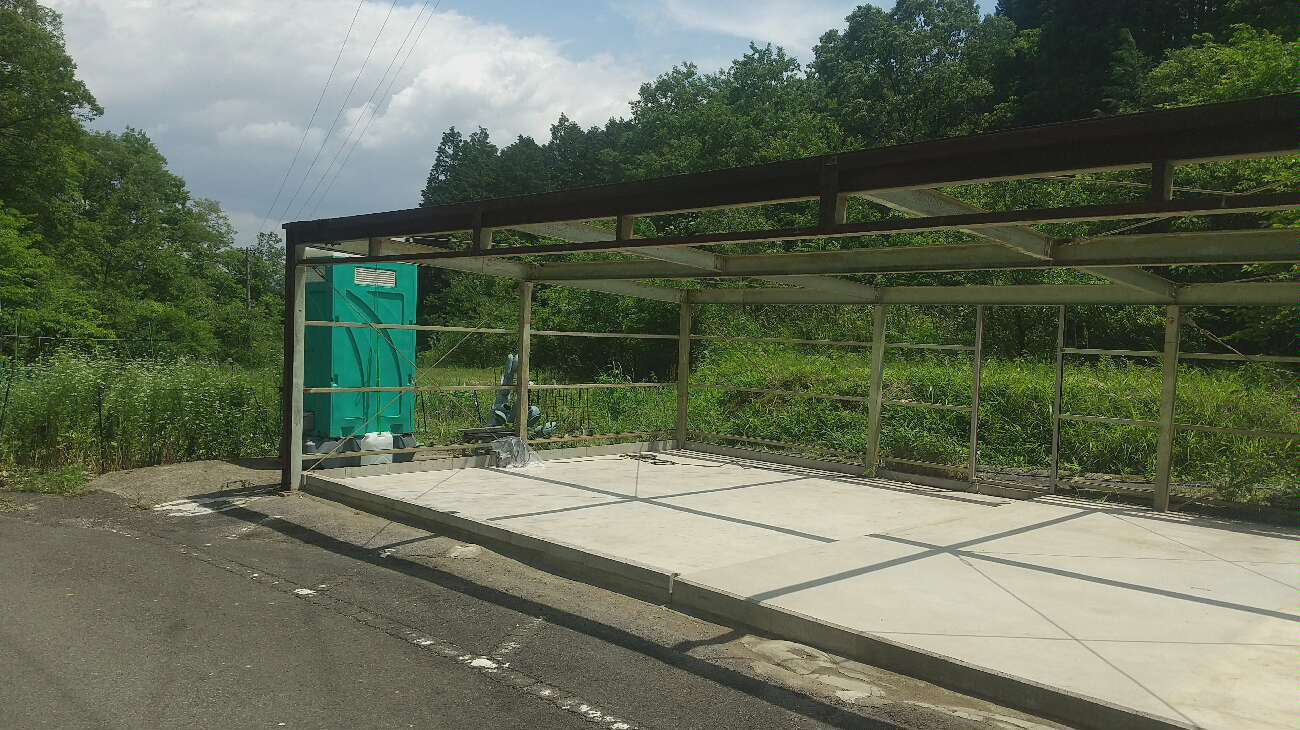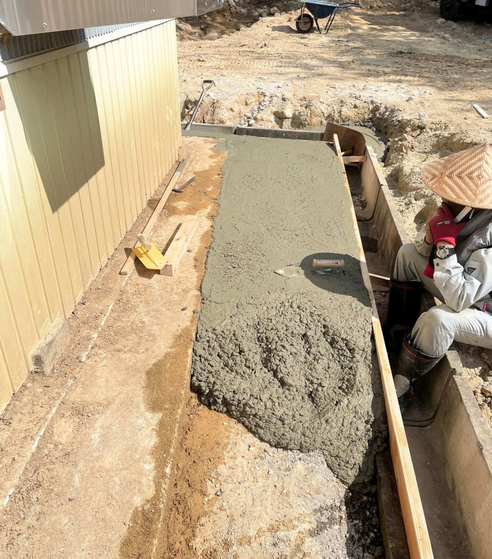 小休憩をはさみつつ、なんとかコンクリートまで敷設することができました!