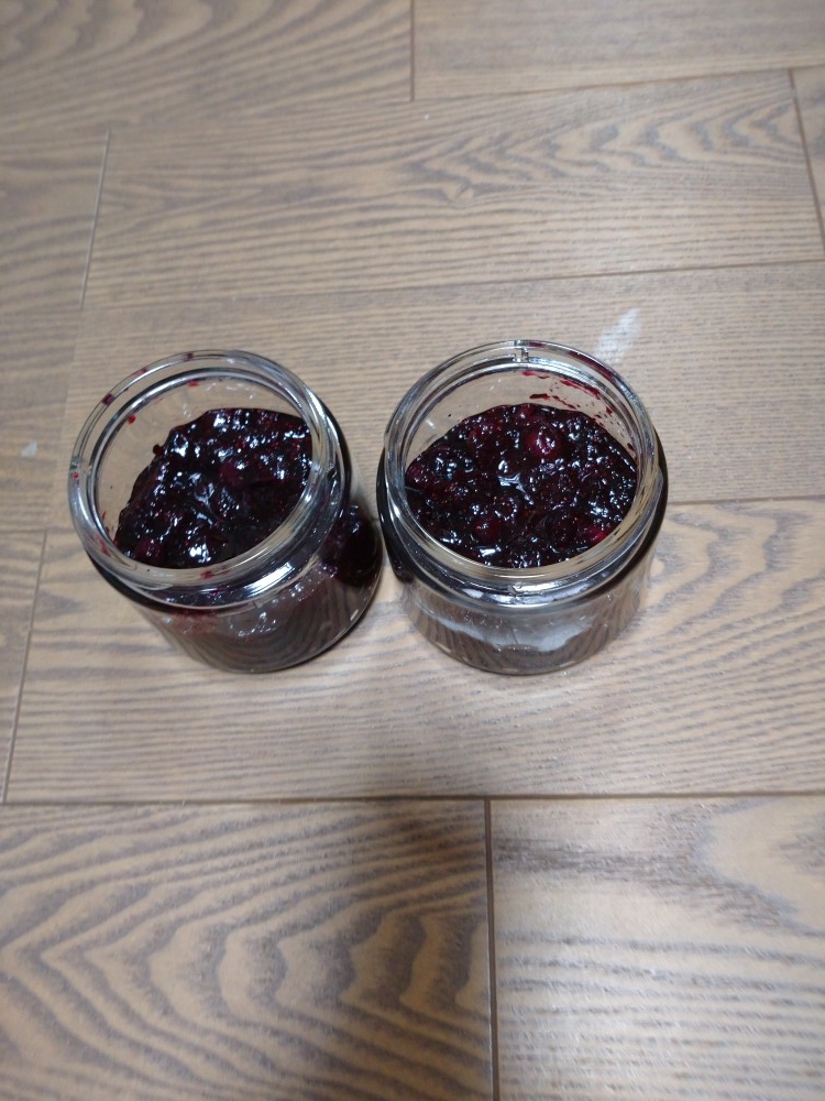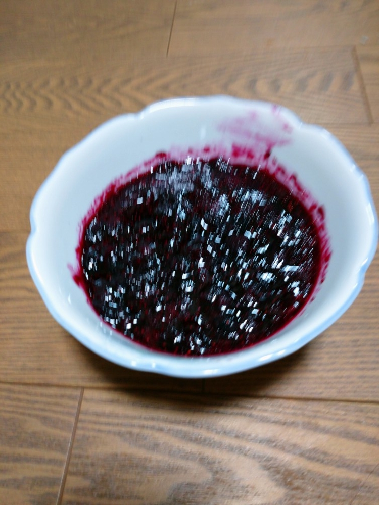 材料は冷凍ブルーベリー、砂糖(原料の30~50%)、レモン汁(少々)