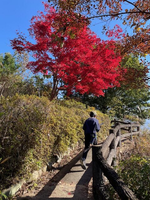 途中、真っ赤な紅葉がみごとな遠山家屋敷で