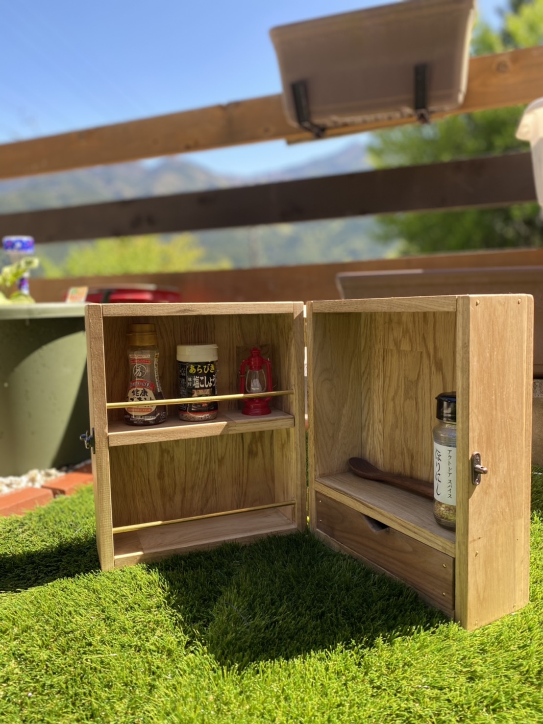 初めて作成したので、調味料の真鍮パイプが少し高くて、ほりにし調味料が入りませんでした(笑)