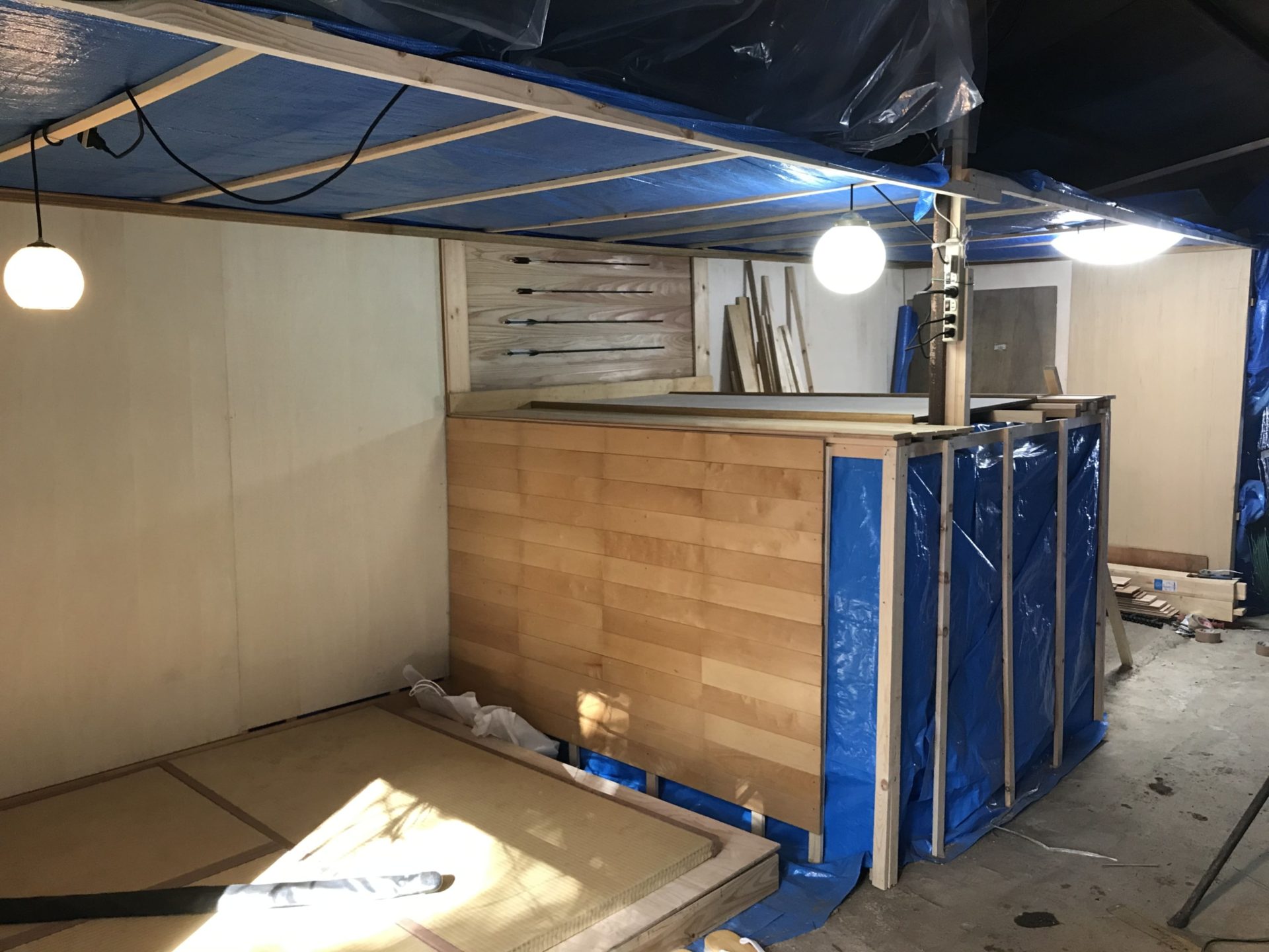 そのあとも、倉庫の中に眠っていた床材やべニアをペタペタと貼り付けたり、