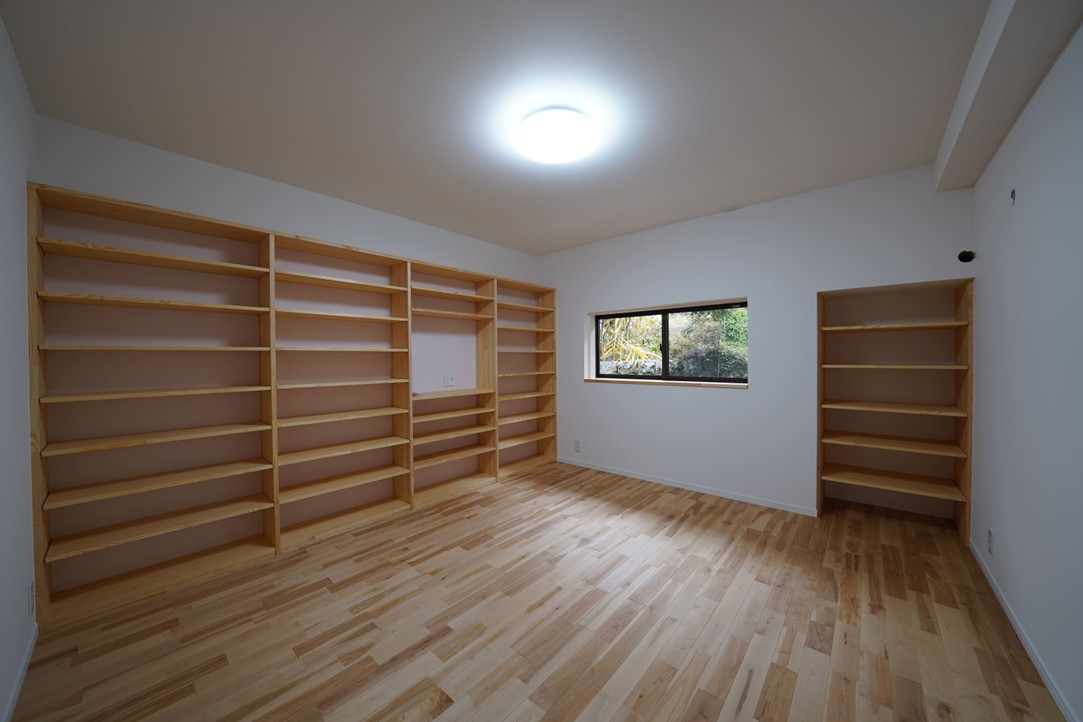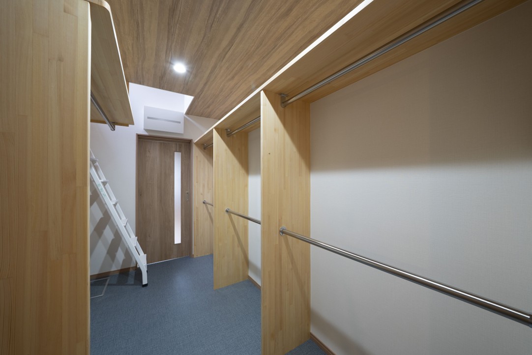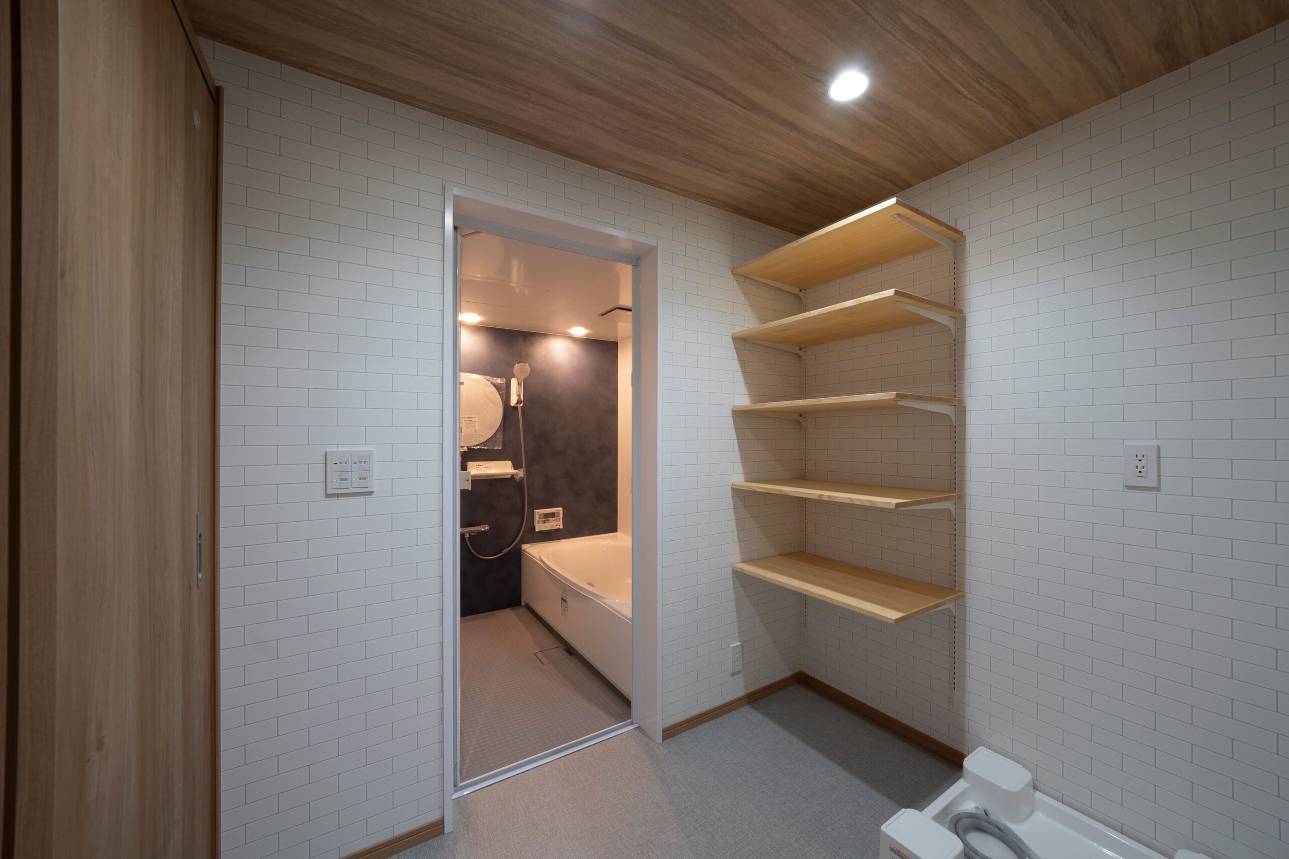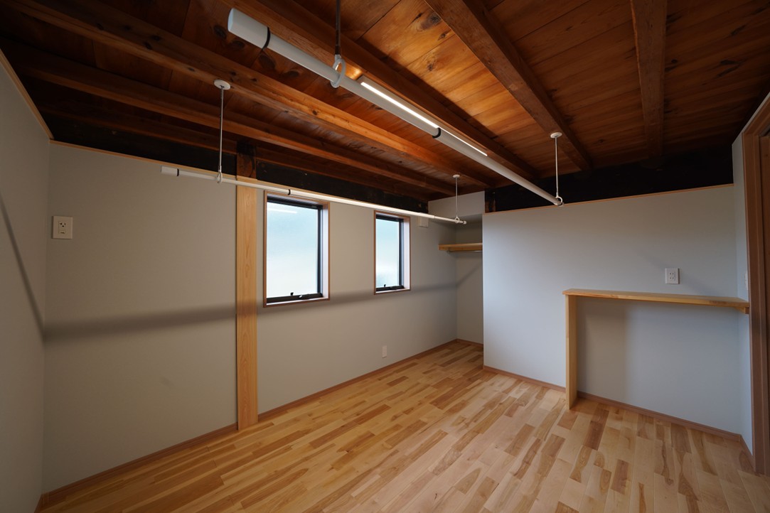 部屋によっては可動棚や衣類をかけれるパイプ、物干し等の施工をさせていただきました。