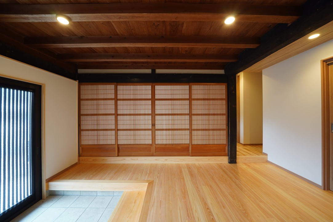 以前使用していた既設の建具を再利用して取り付けましたが、