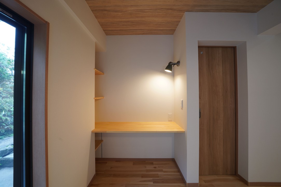 改装工事の良い所は、1部既設の仕上げ材もそのまま使用することができ、雰囲気がすごく良いです。