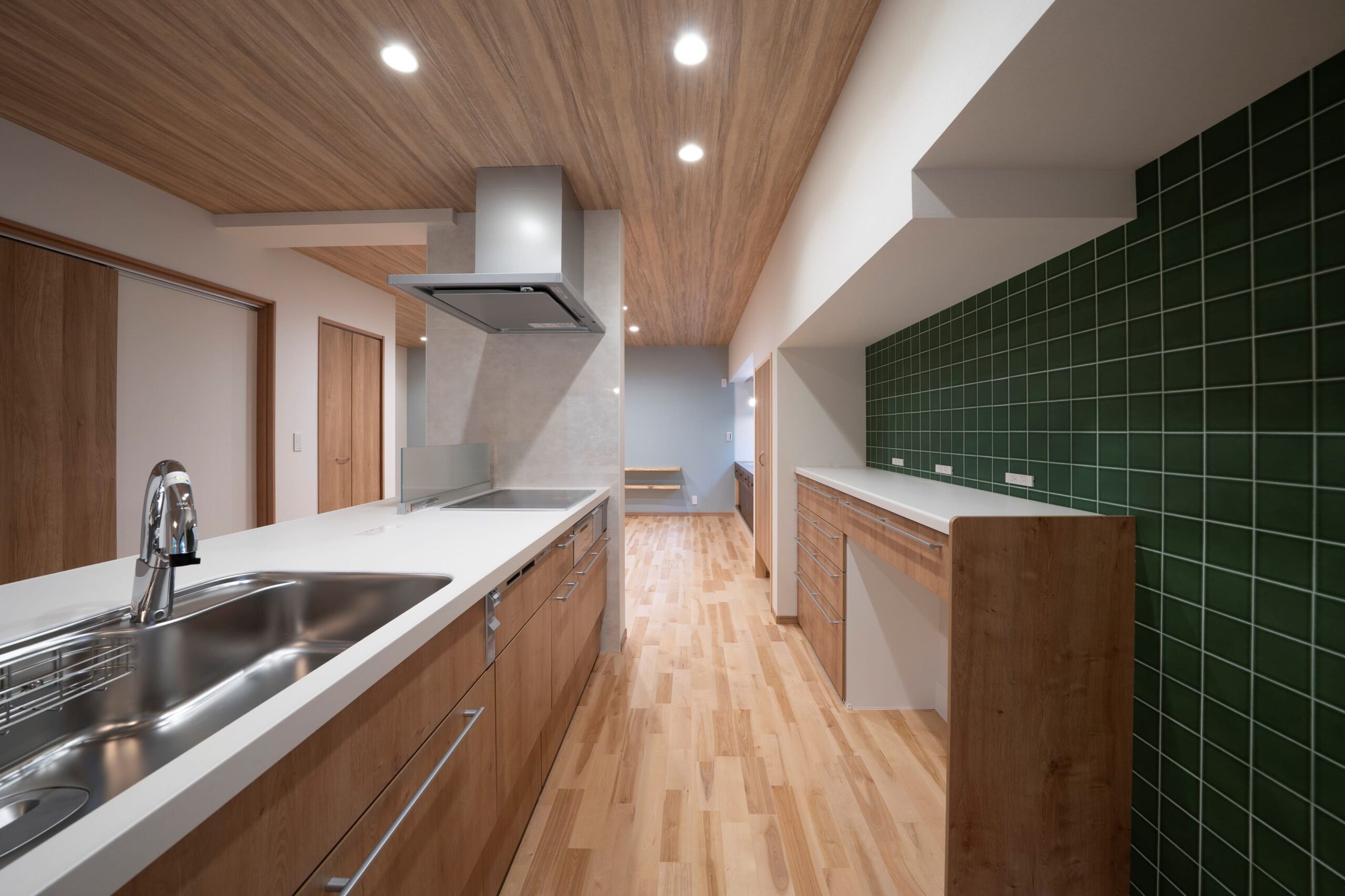 床材もですが無垢のカウンターを使用させていただき、とても暖かく感じます。
