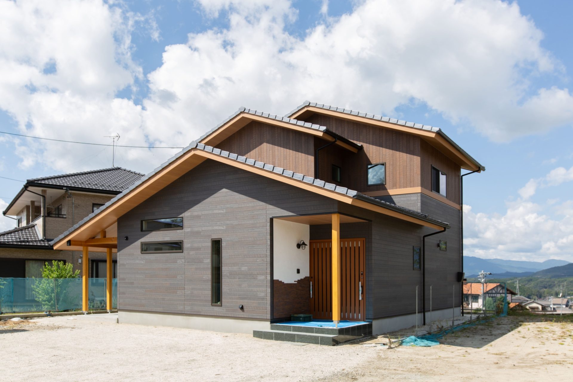 外観はモダンな雰囲気をテーマに、木目調のサイディングを2種類使い分けました!