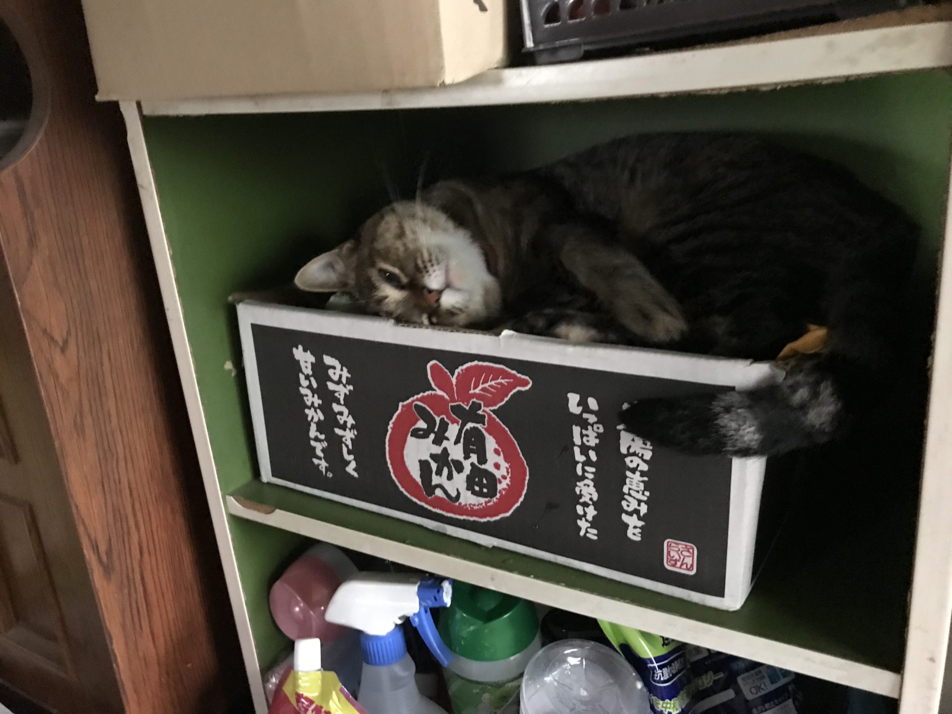 だとしても、タオル置き場では寝てほしくなかったです・・・