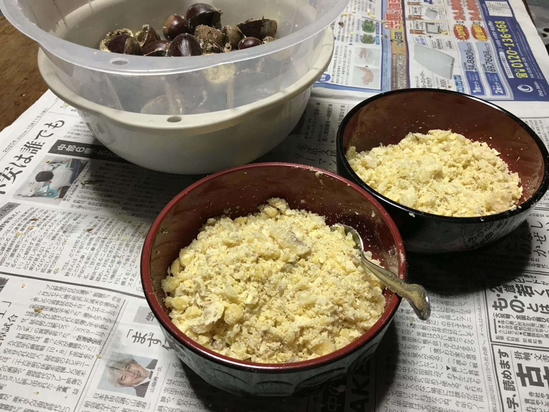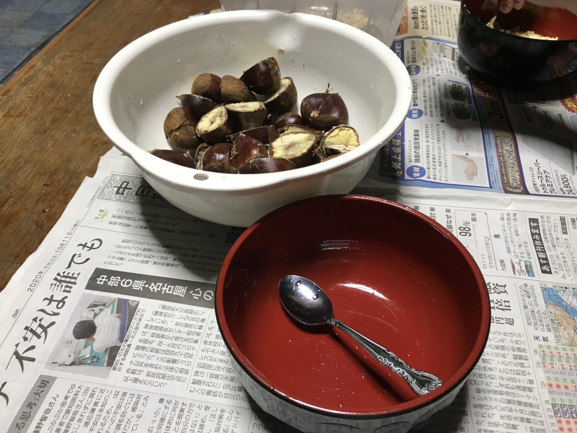 後は、茹でた栗を半分に切って、ほじるだけ!