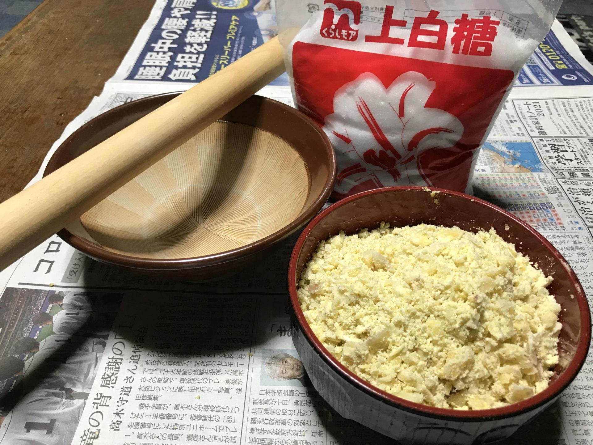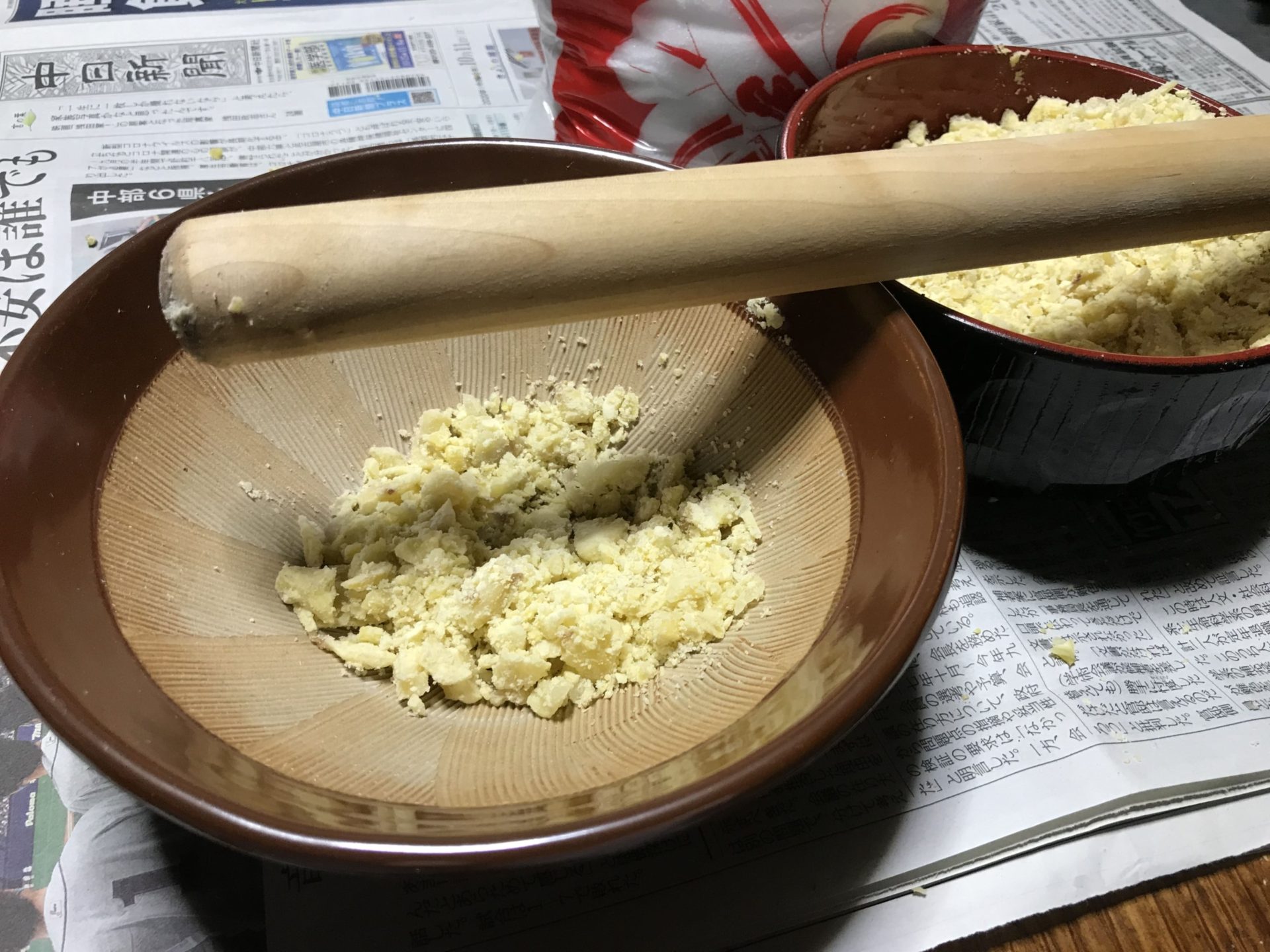 ここからは、すり鉢でゴリゴリして、砂糖でシットリさせます!