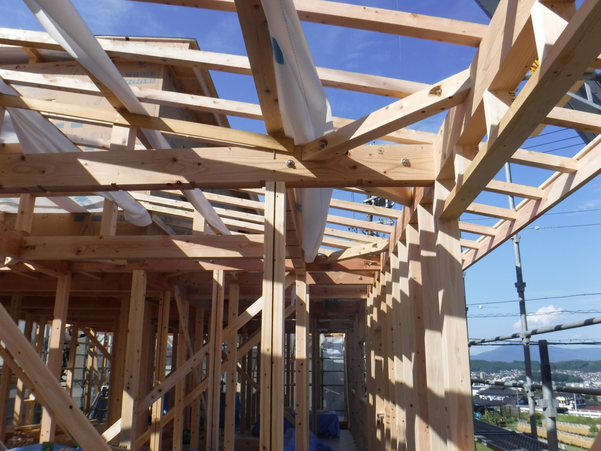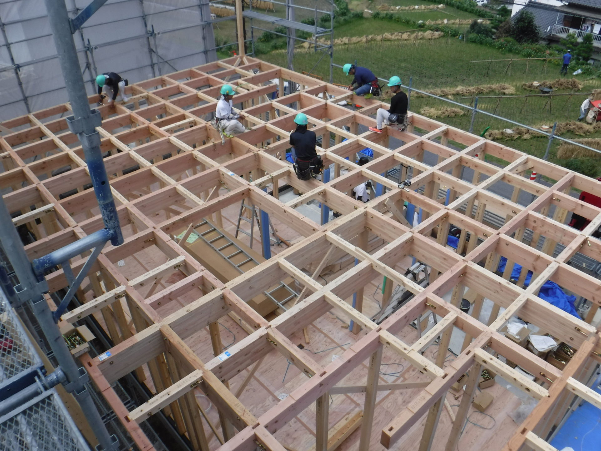 大工さんや皆さんの頑張りのおかげで、目標にしていた2F桁組まで完了することができました。