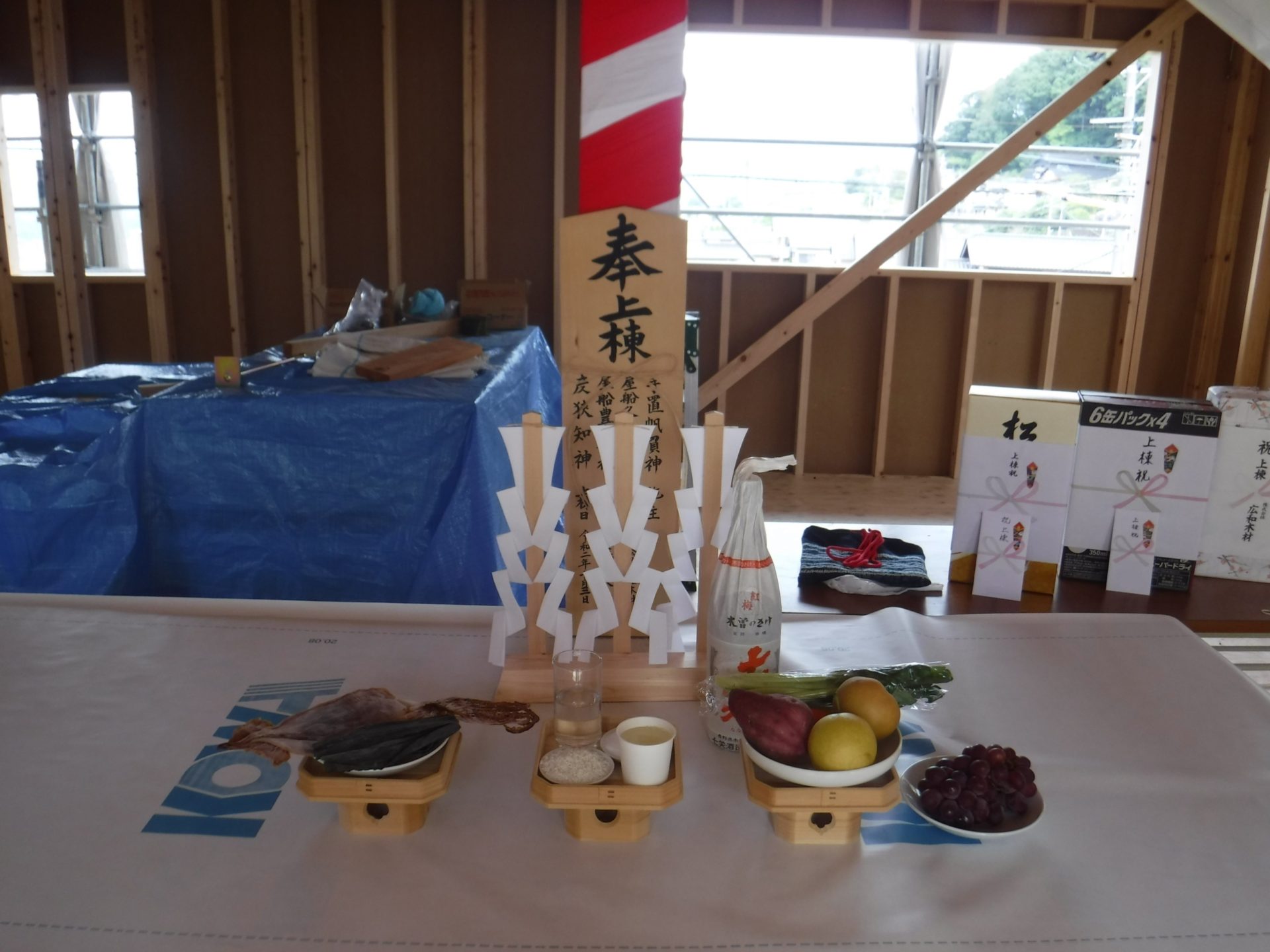 土地の神様を鎮めて貰い、完成までの無事故と住まいする家族の繁栄を祈願して頂きました。