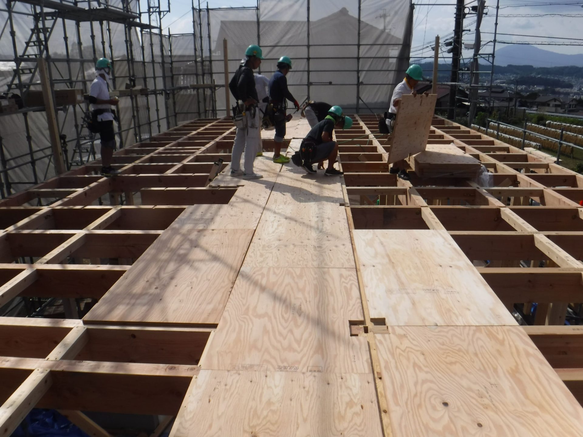 2F屋根の続きと耐力壁施工を目標に作業開始!