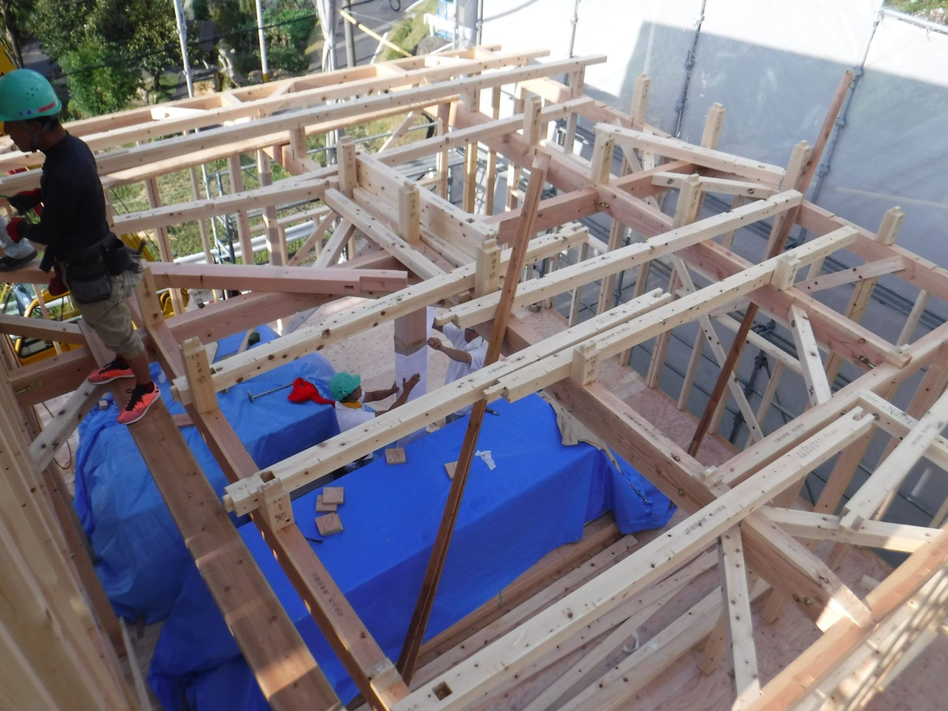 3階の屋根と2階の屋根完成を目標に、作業をしていただきました。