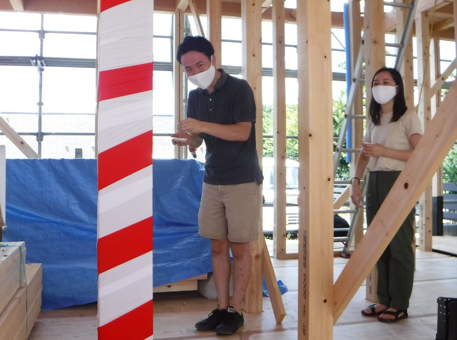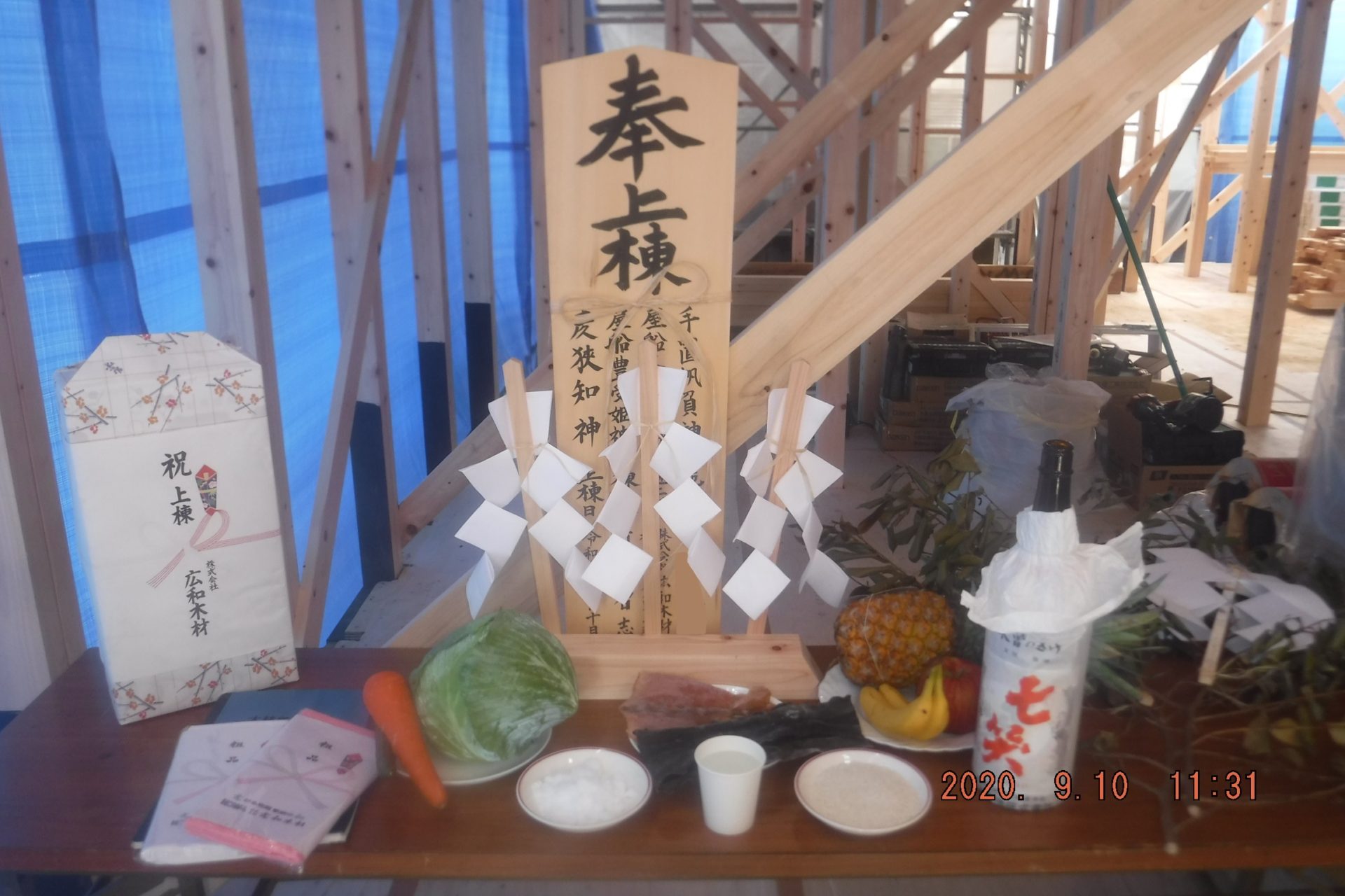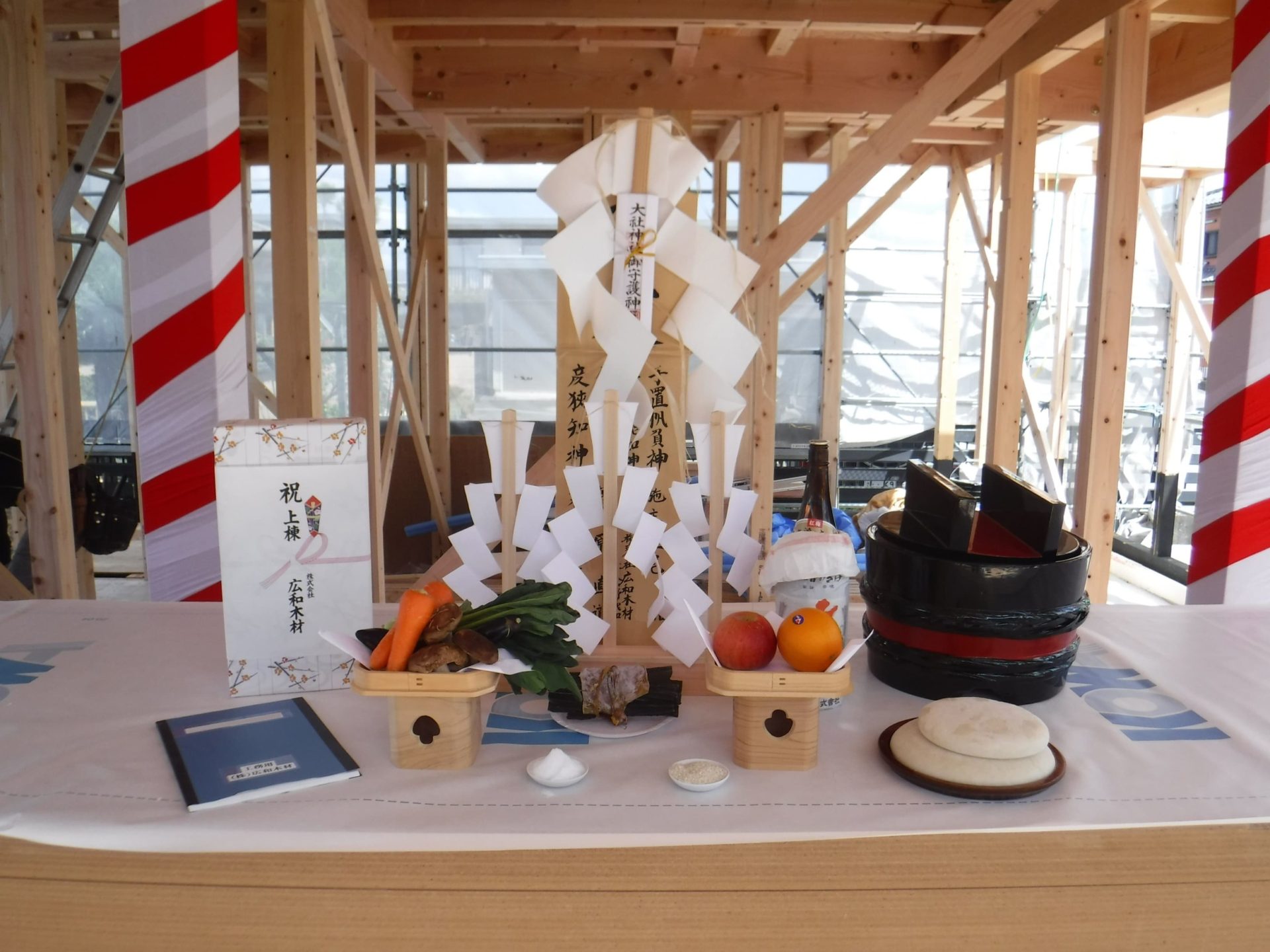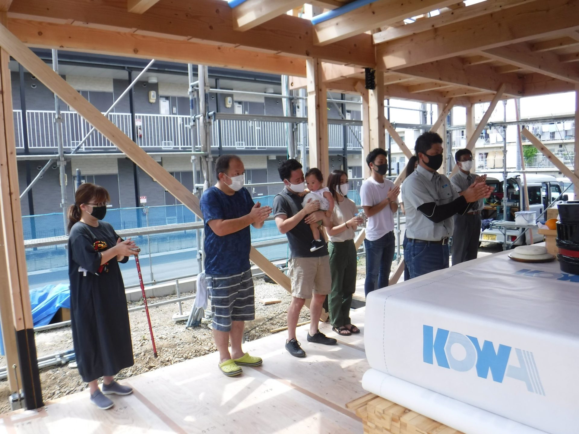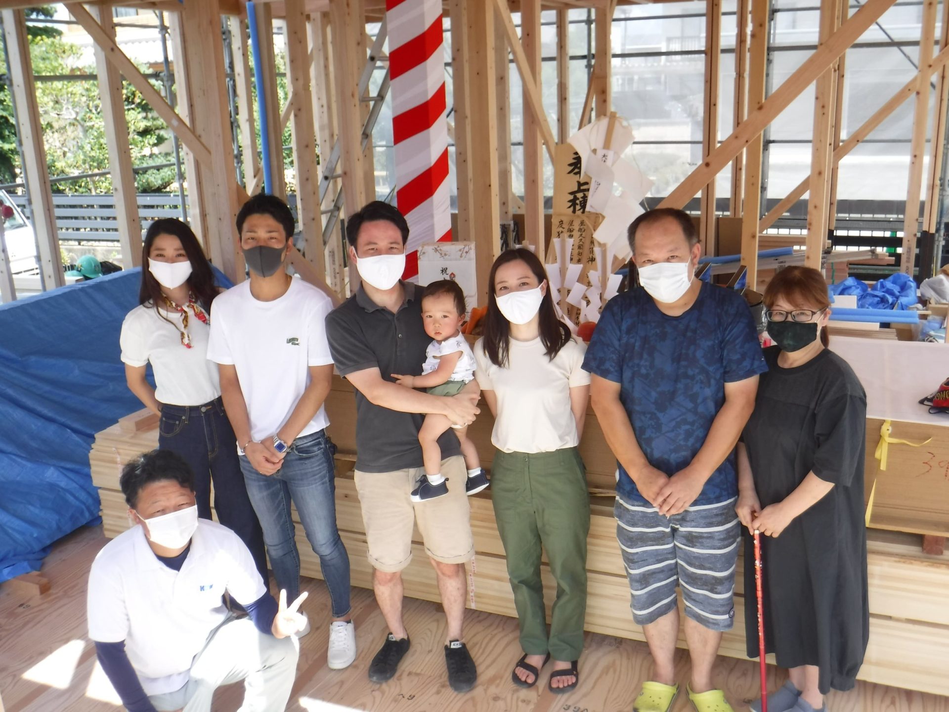 コロナウィルスの影響を考慮し、今回は私たち家族と、当社スタッフと棟梁のみで上棟式をさせて頂きました!