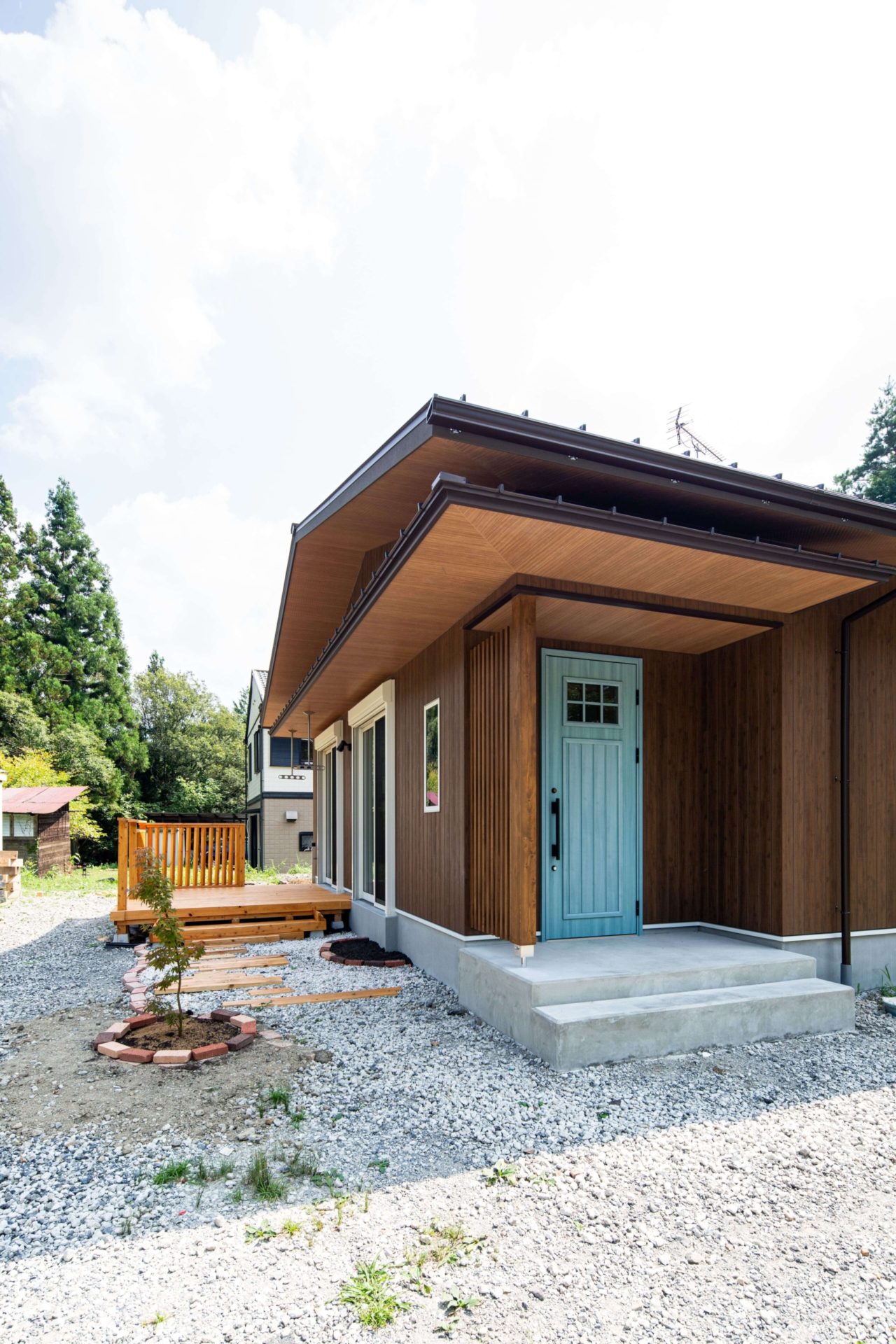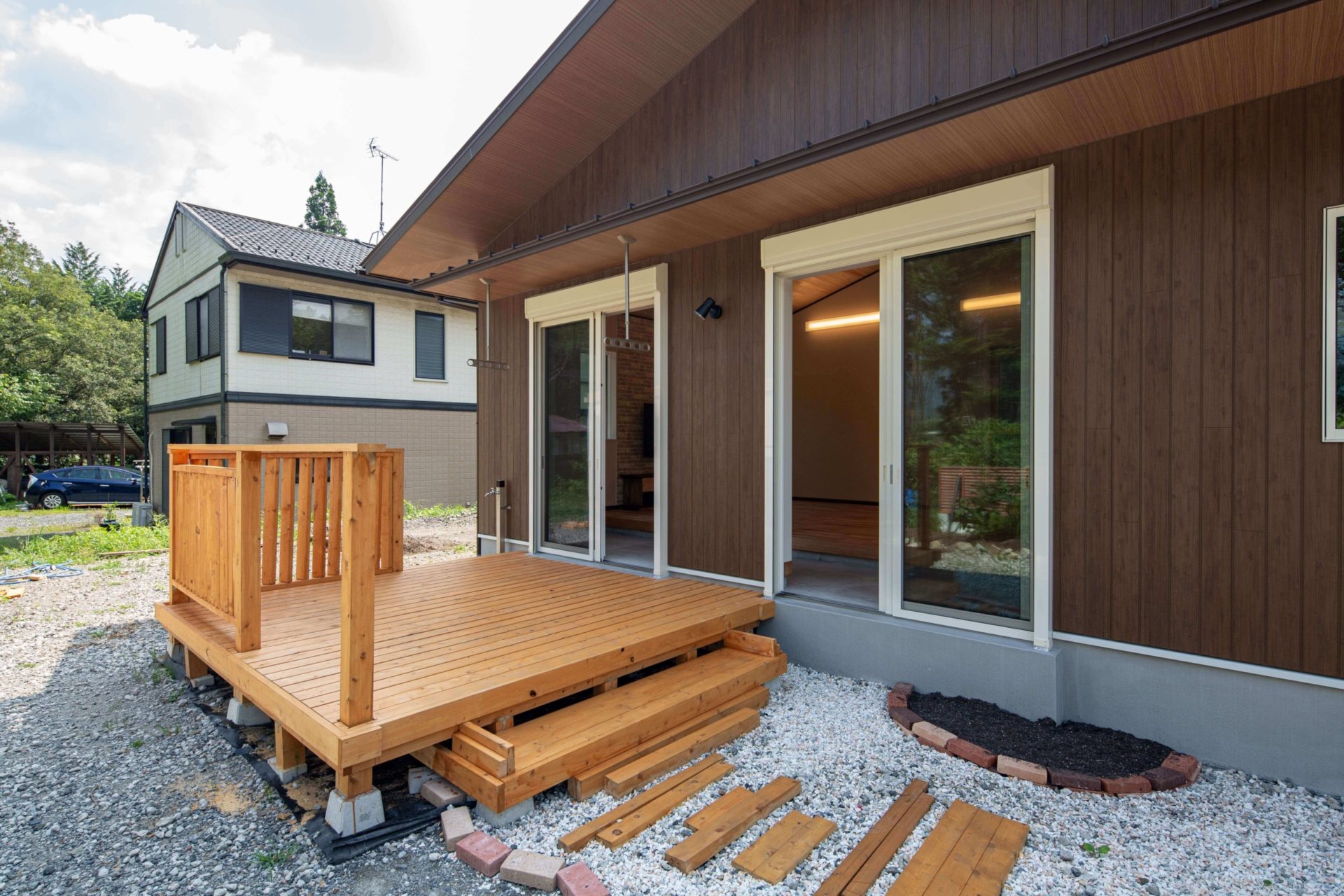 ウッドデッキ、庭はH様が考え、自分で施工されました。また1年点検の時どう変わっているかとても楽しみです!!