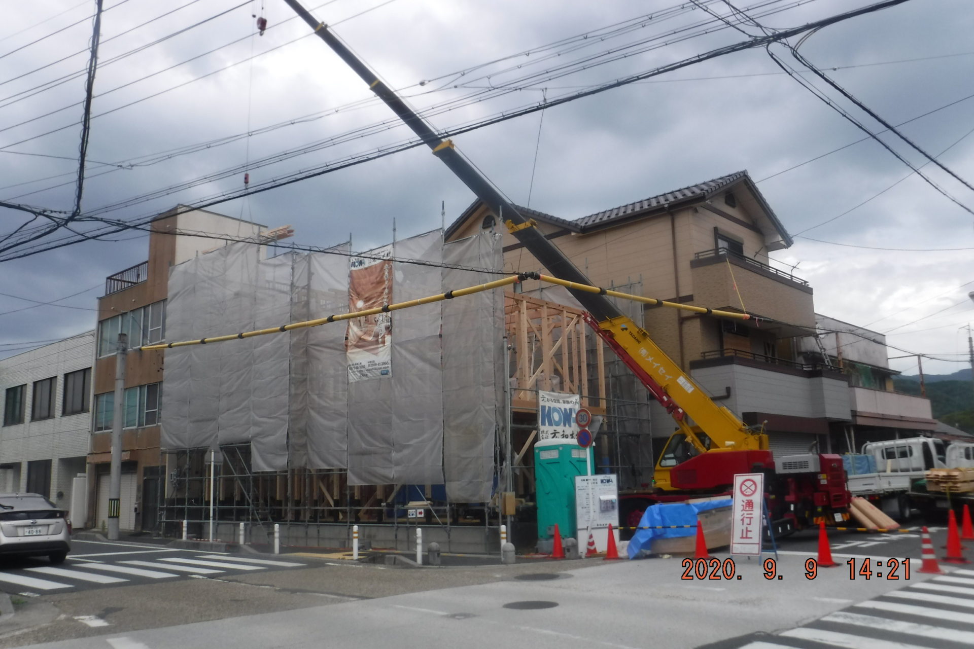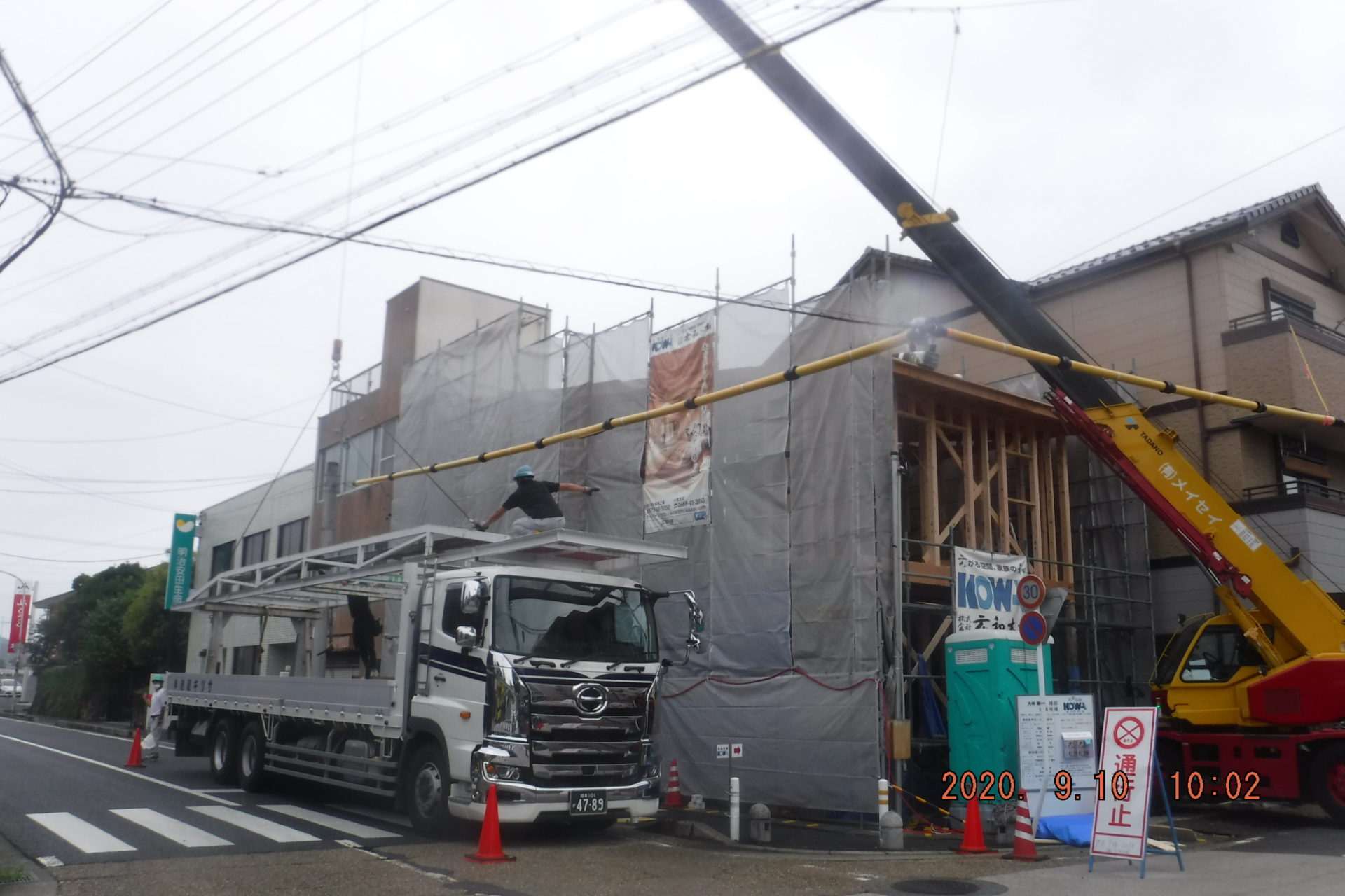 建方初日、大工さん・レッカーのオペレーターさん・広和の社員の皆さん、
