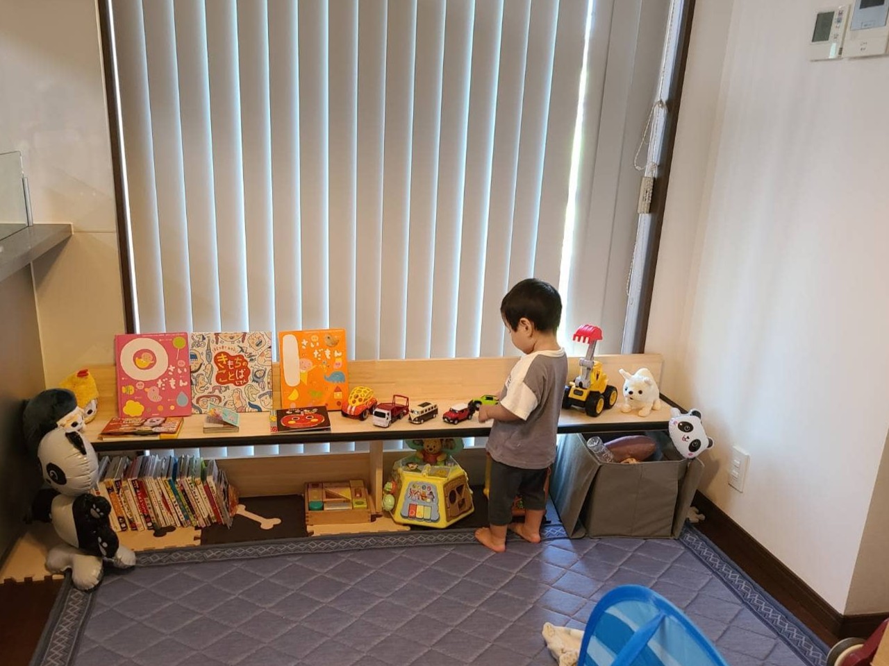 子どもがちょうど手を伸ばせる高さで、おもちゃを出し入れしたり