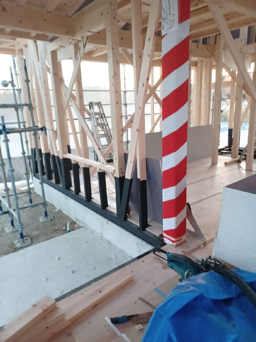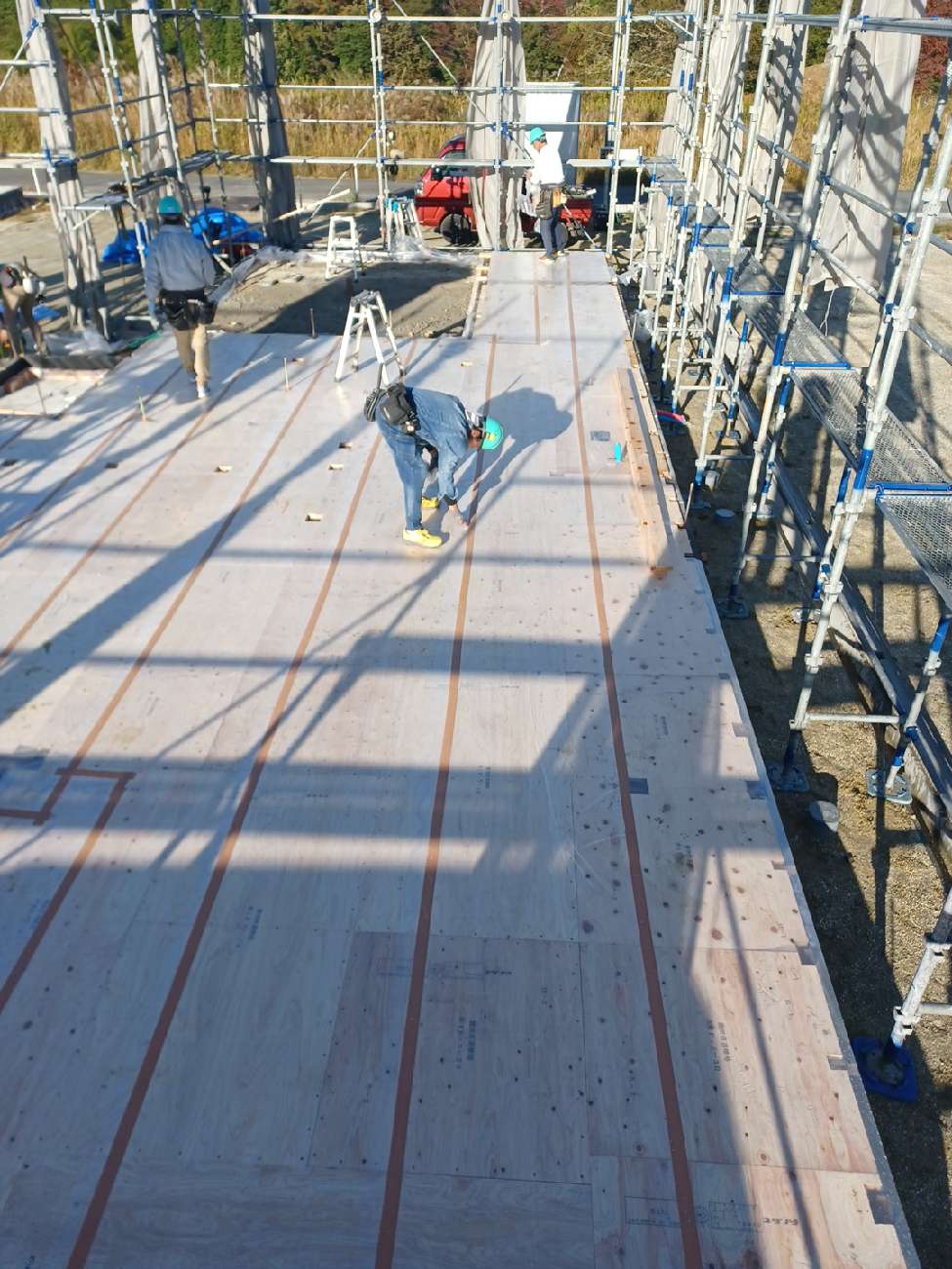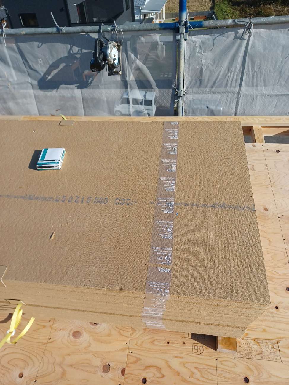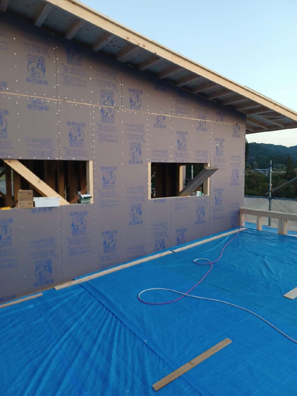 職人さんの段取りも良く、外壁の耐力面材も施工が出来て本当に順調でした。