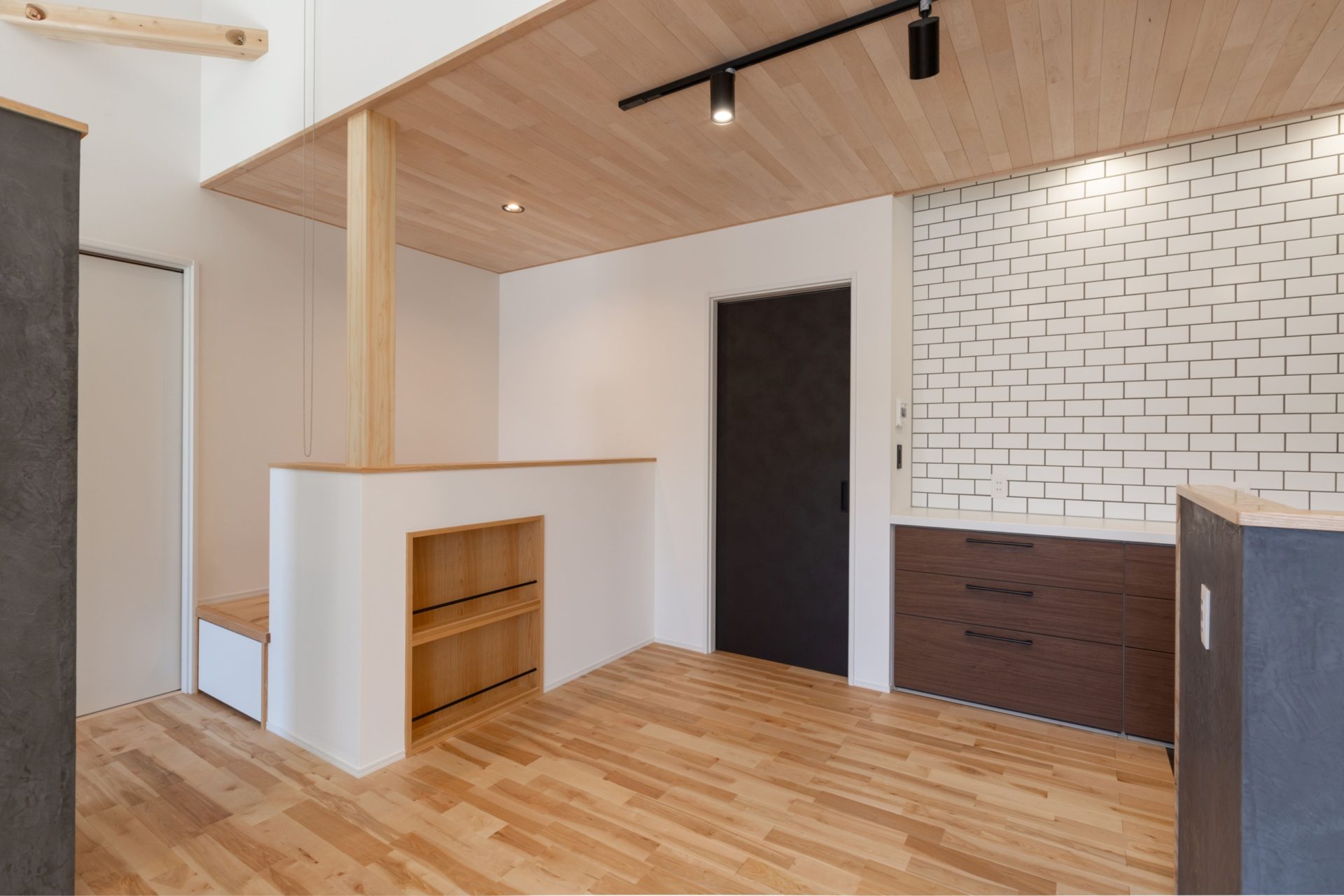 片流れ屋根の高さを利用した開放感がある勾配天井!