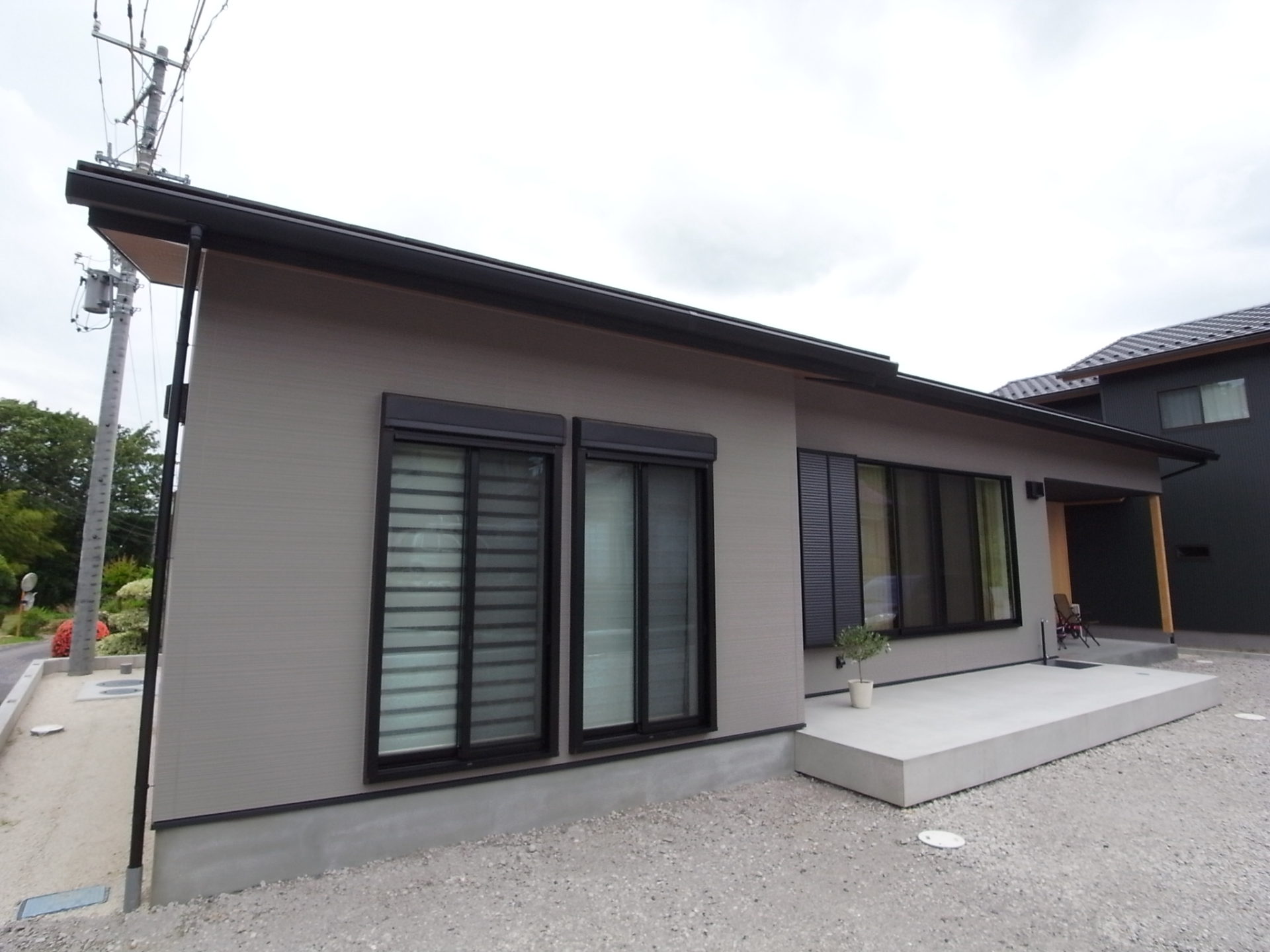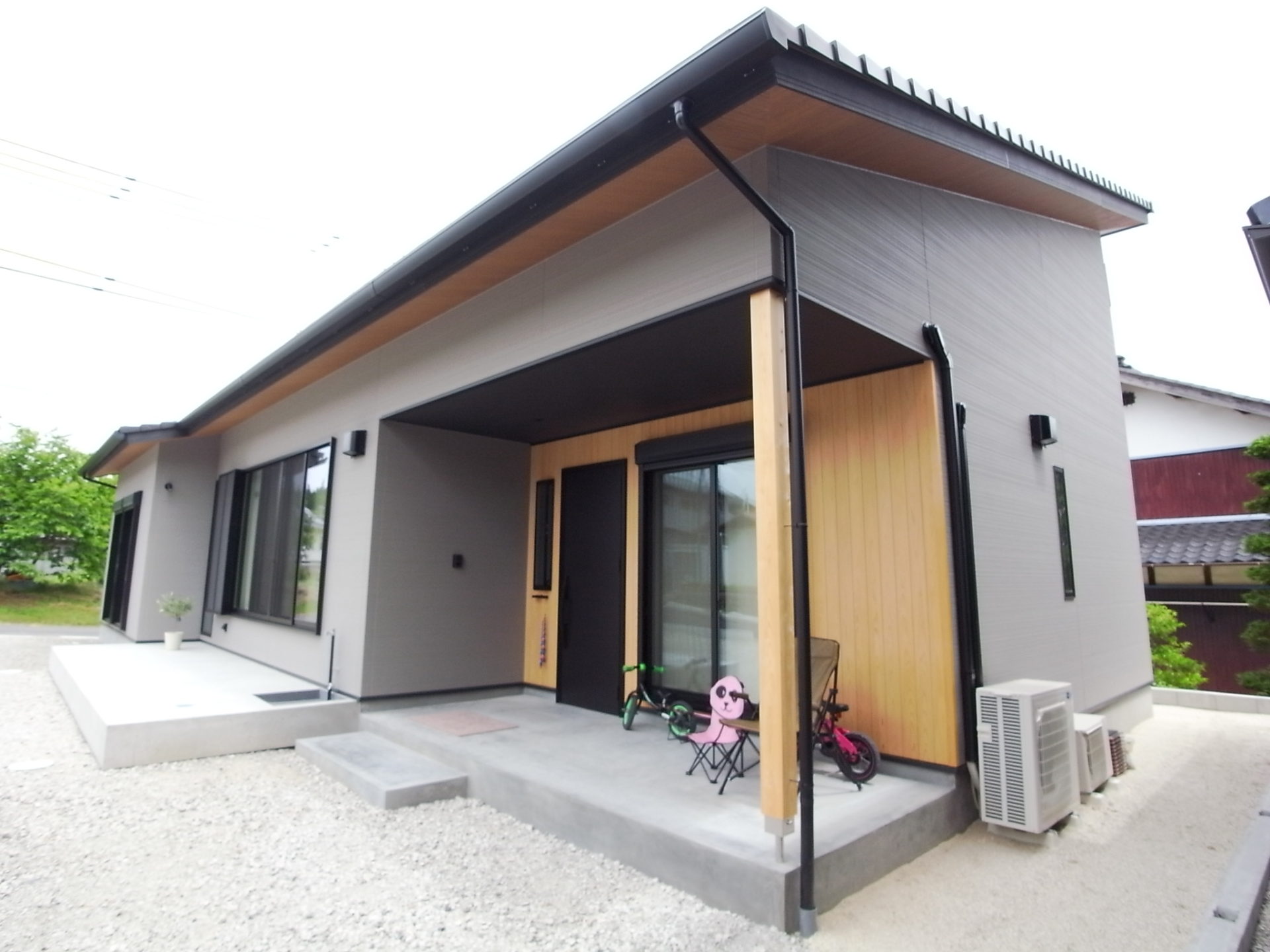 外観はシンプルモダンをテーマに、グレーを主とした外壁に、アクセントで桧の羽目板を施工させていただきました!