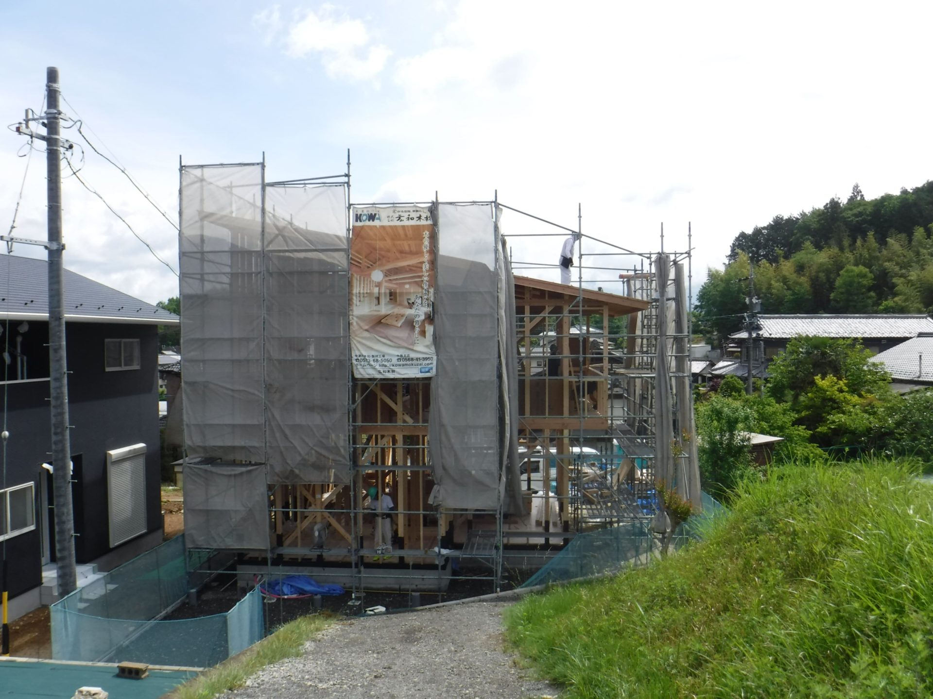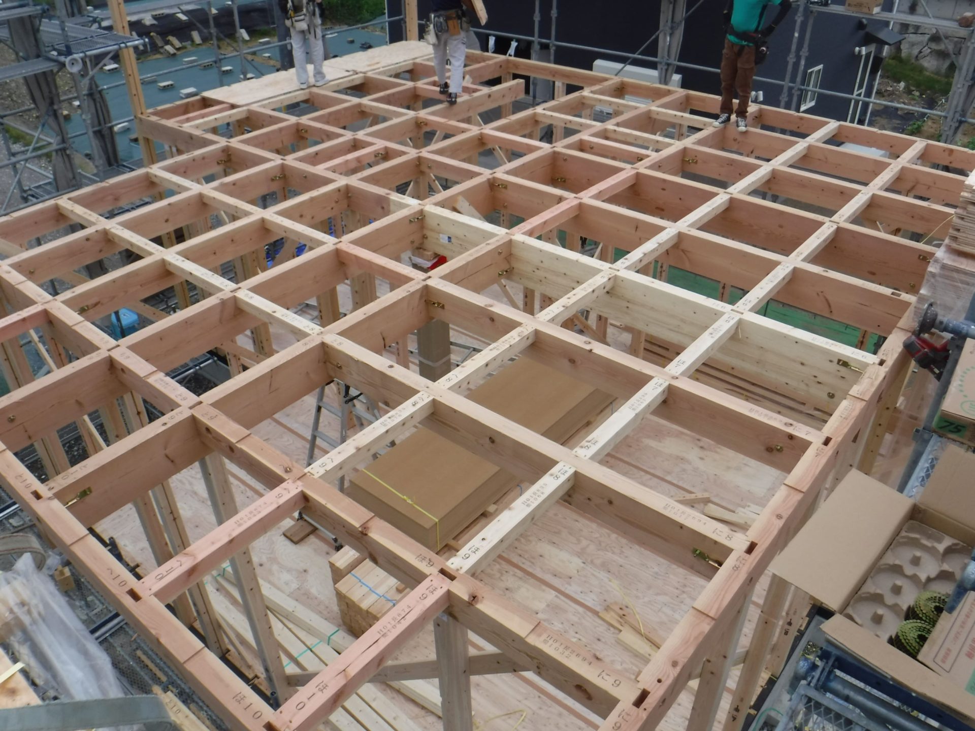 皆さんの頑張りもあり、雨養生が出来る垂木施工まで作業を完了することが出来ました!