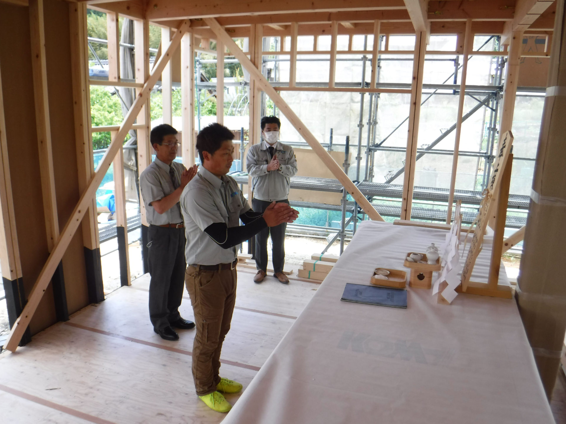 コロナウィルスの影響で、お客様と相談した上で、今回は当社スタッフと棟梁のみで上棟式をさせて頂きました!