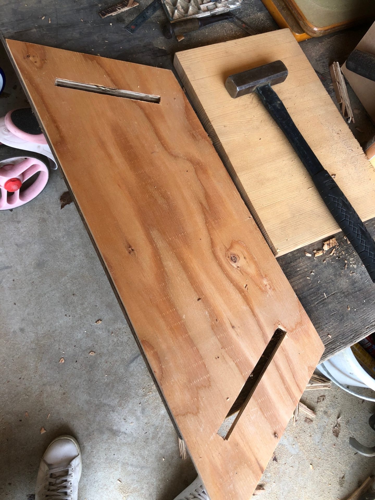 板に足が刺さる寸法は、平行に3.5cm幅15cmで開口をあけました!