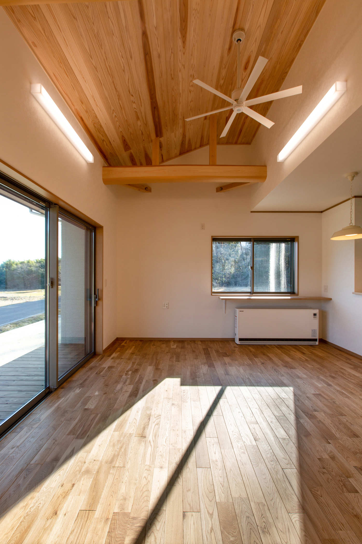 床材、天井材、壁材ともに桧の板を使用して木の温もりが感じる内装になっております。