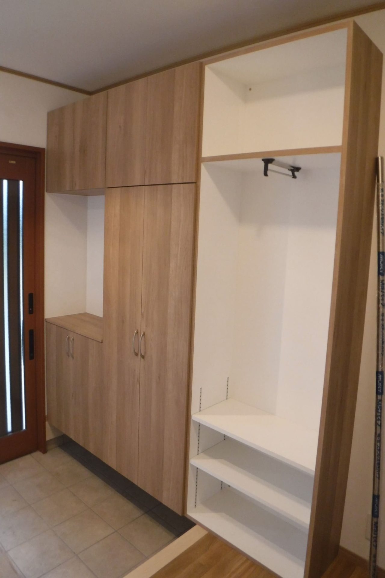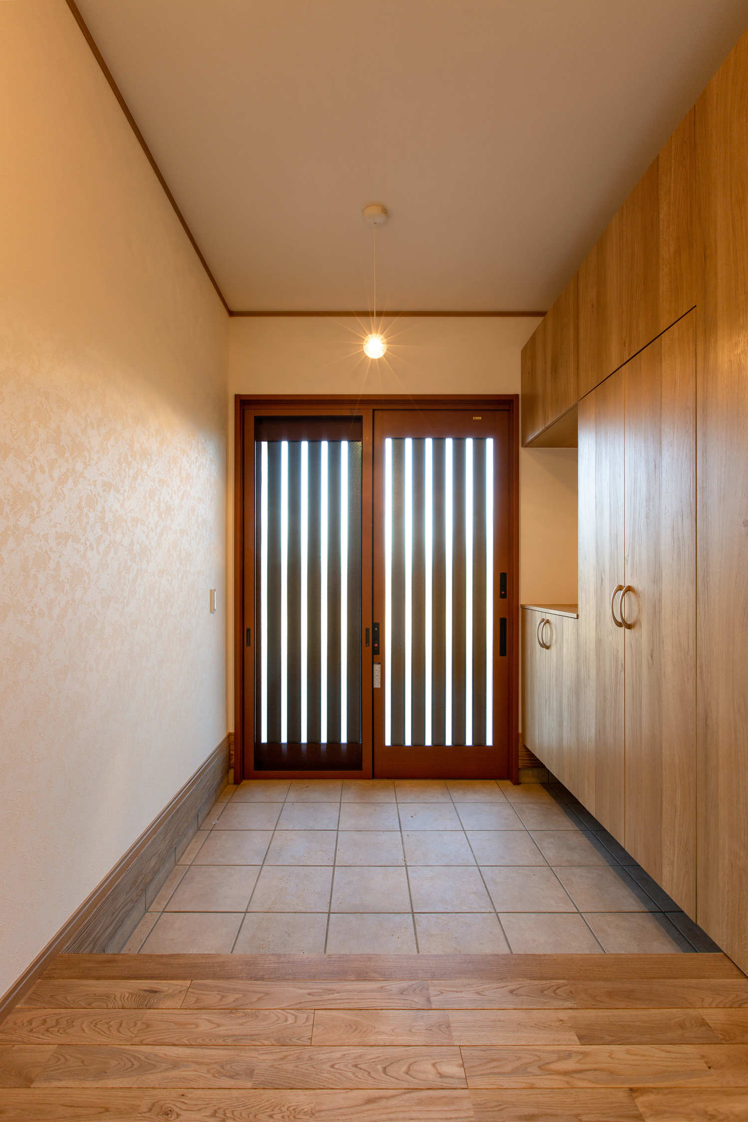 玄関ホールには、靴やコートなどを収納できる大容量玄関収納を完備!