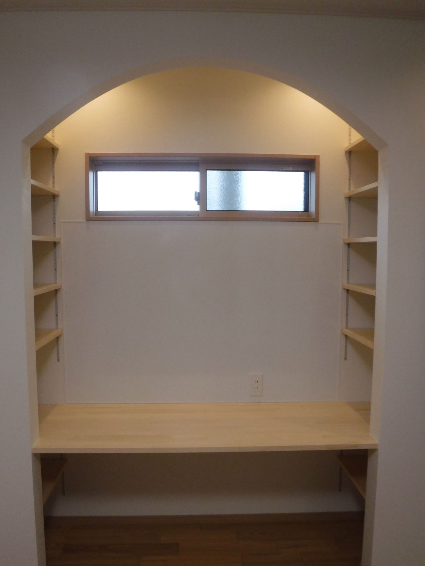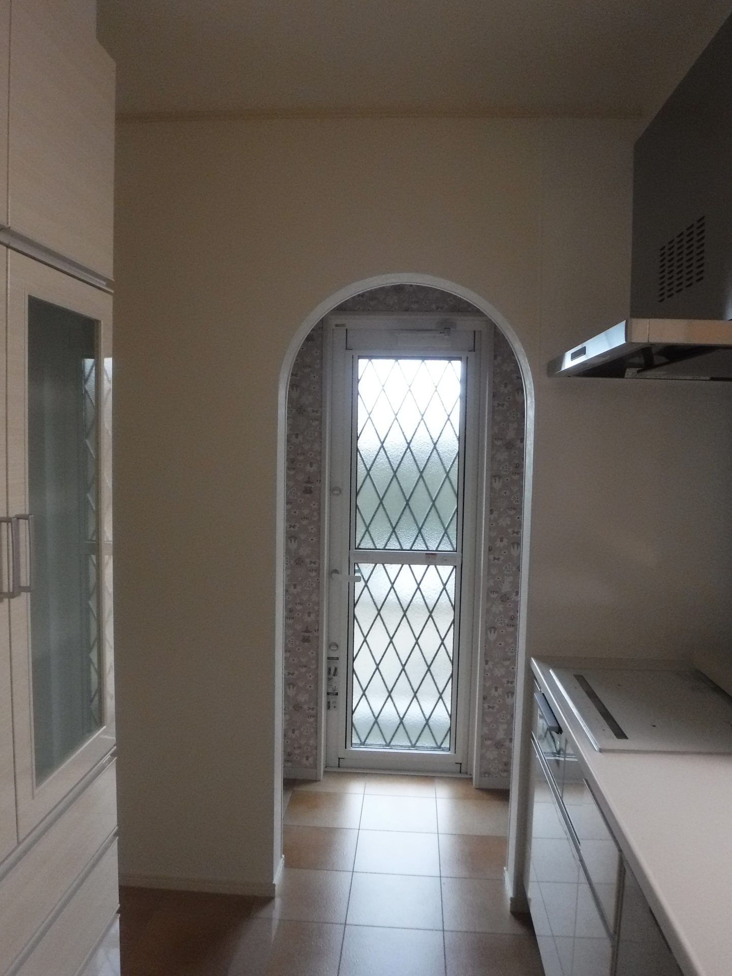 リビングのスタディーコーナーや食品庫、玄関等をRの壁はお客様のこだわりです。