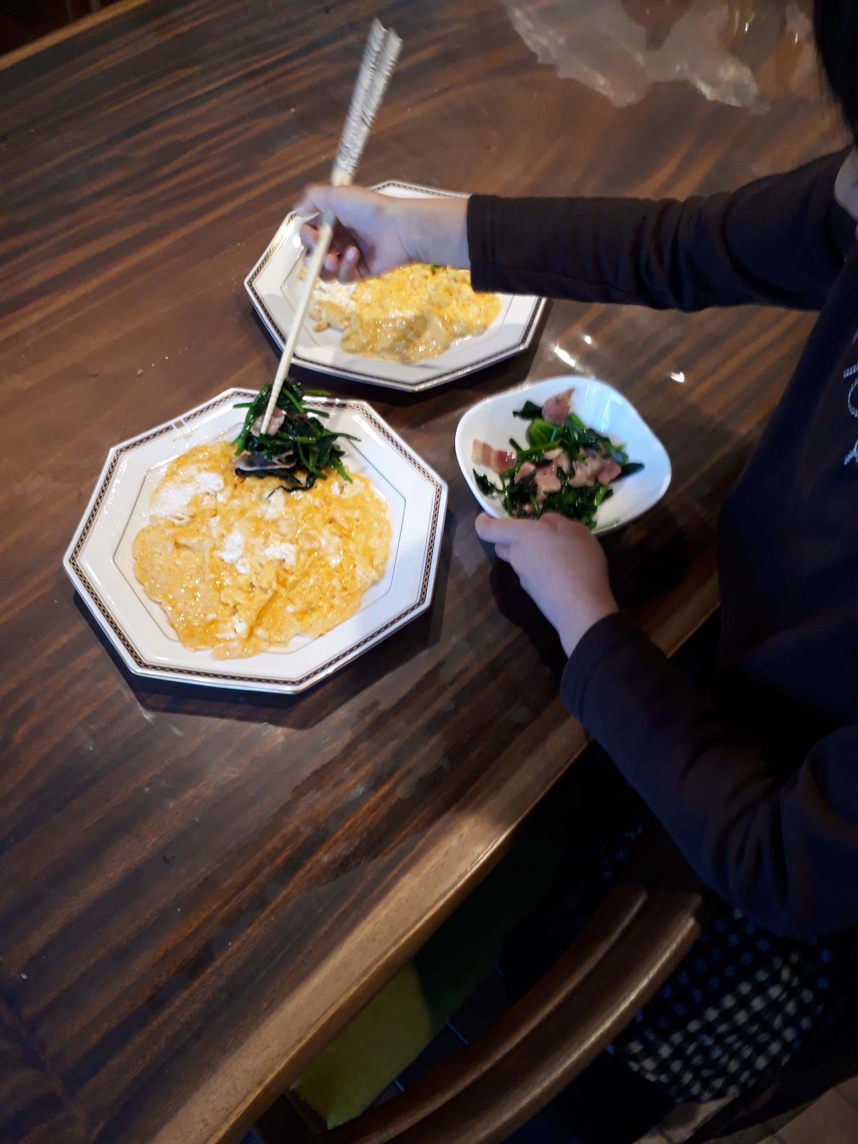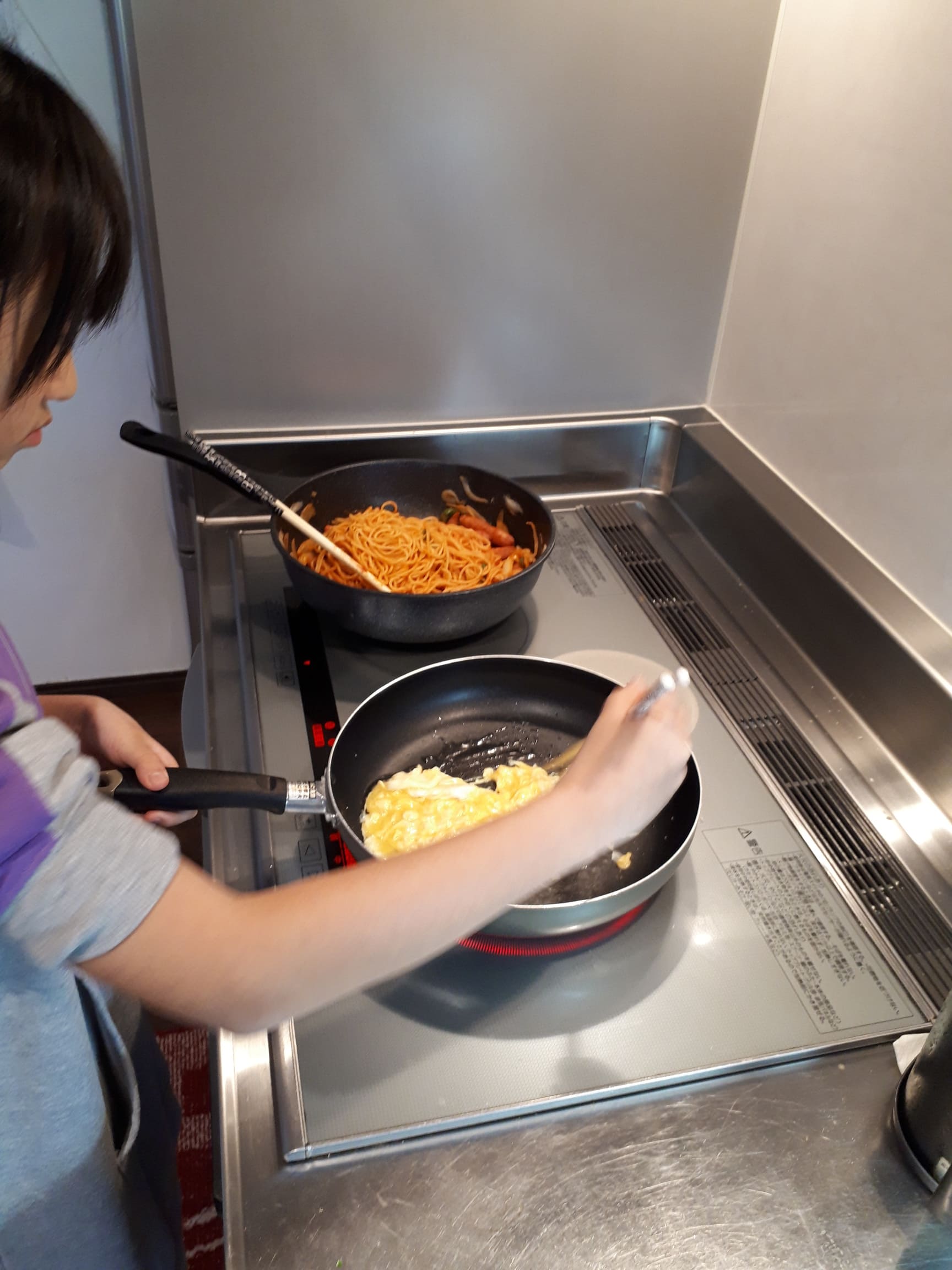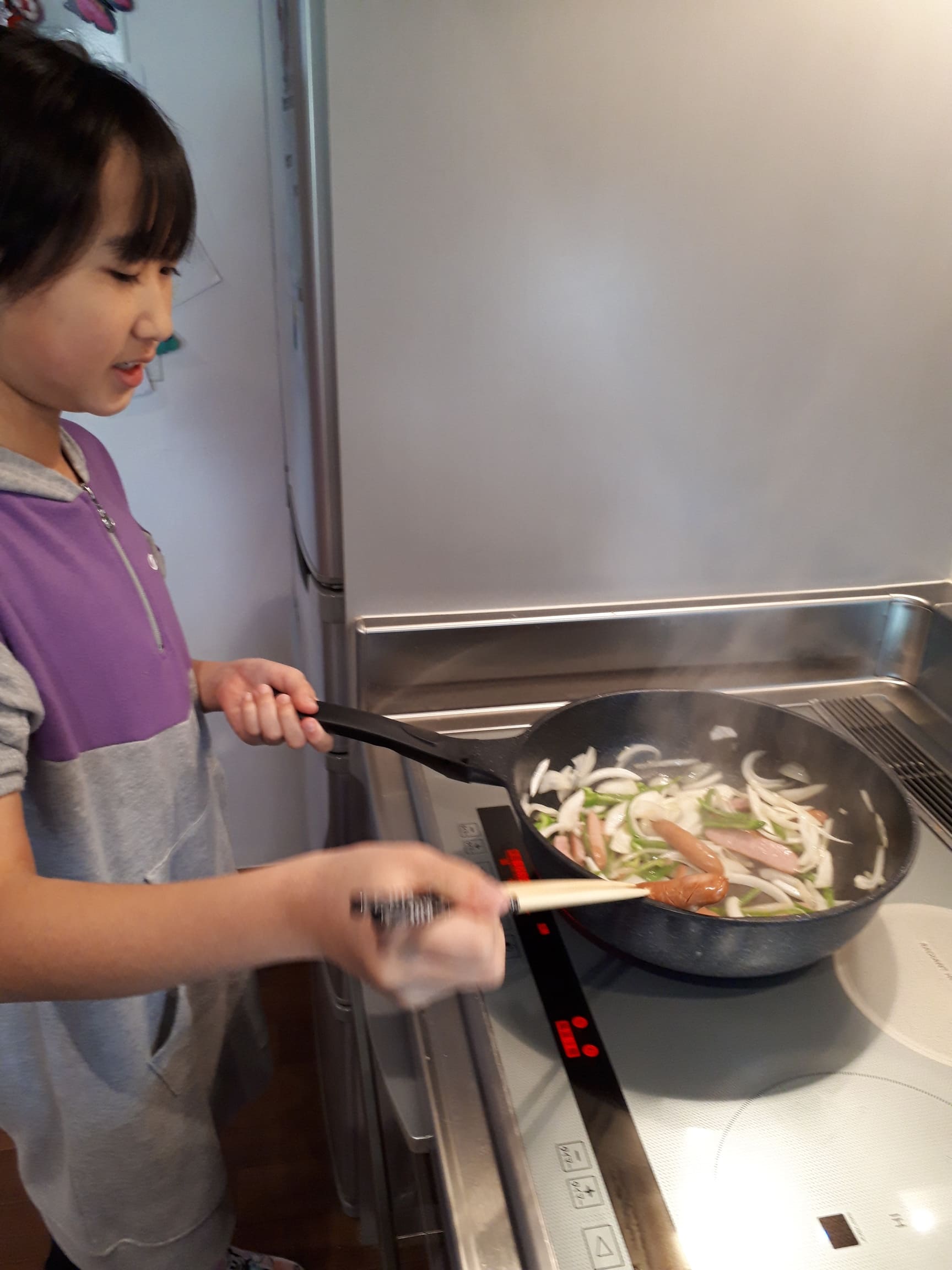 フライパンに油を引き、炒め、一生懸命作ってくれました。