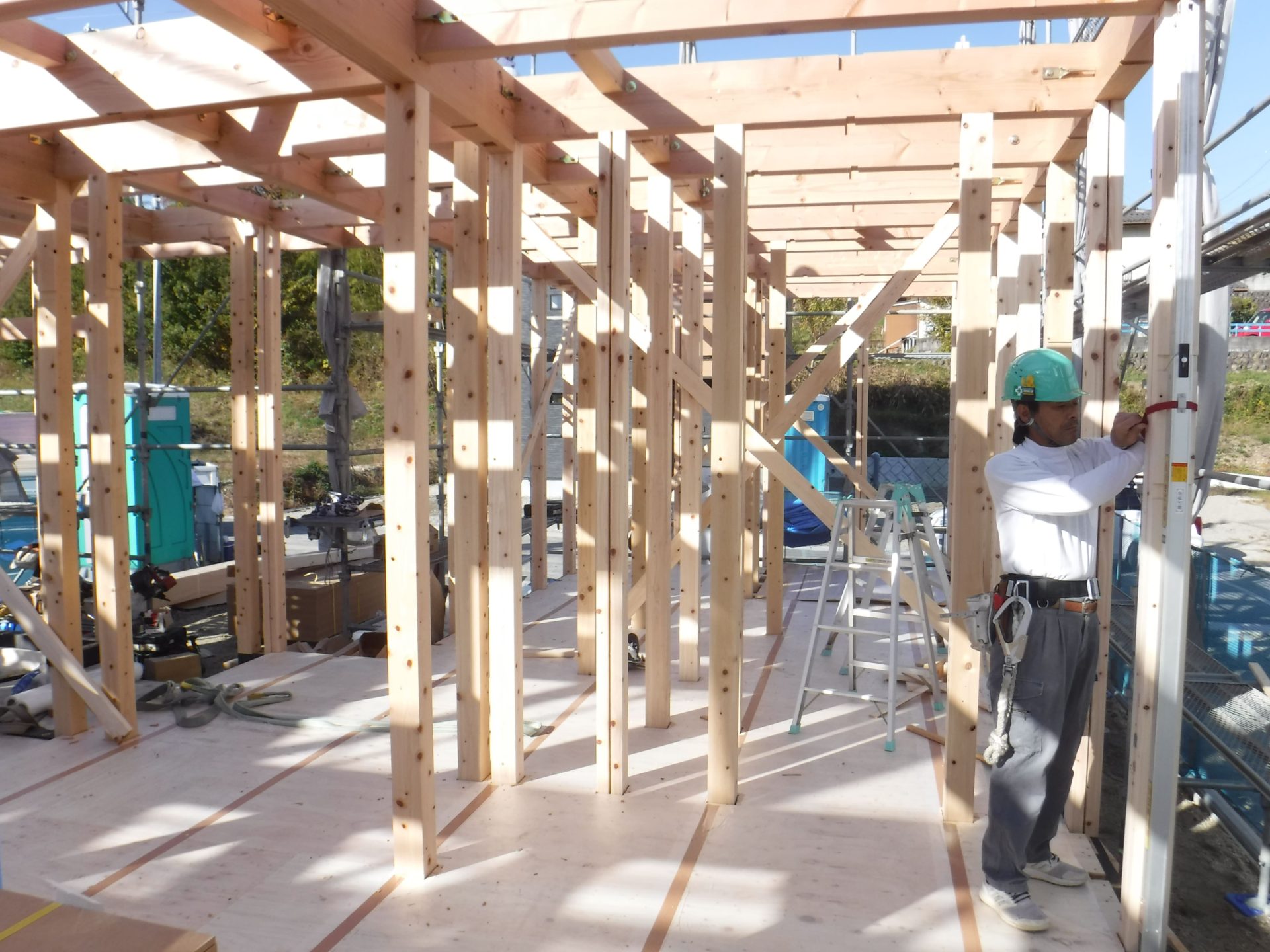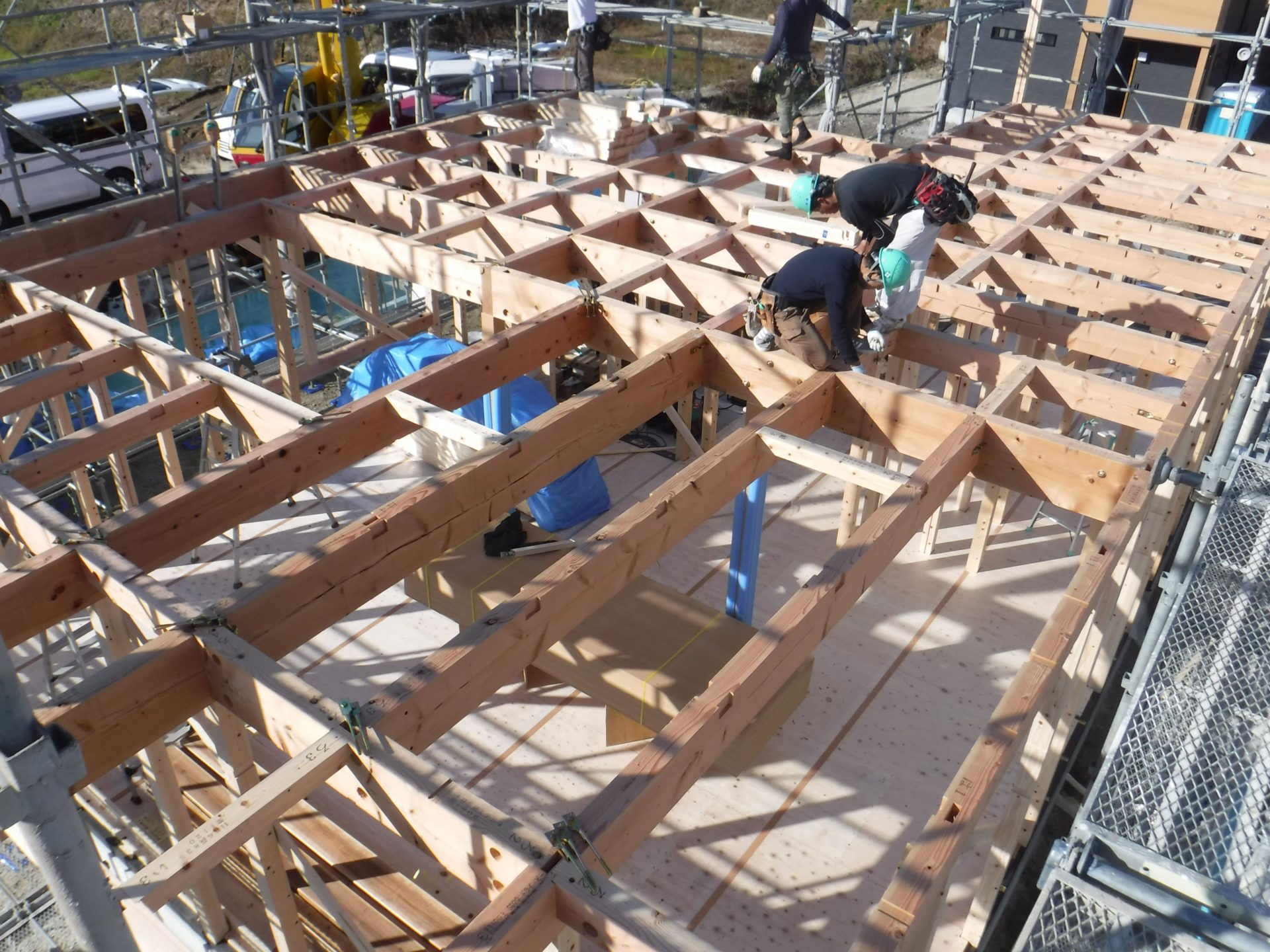 初日にここまでスムーズに作業が進んだのは、大工さんや応援に来ていただいた工務・製材