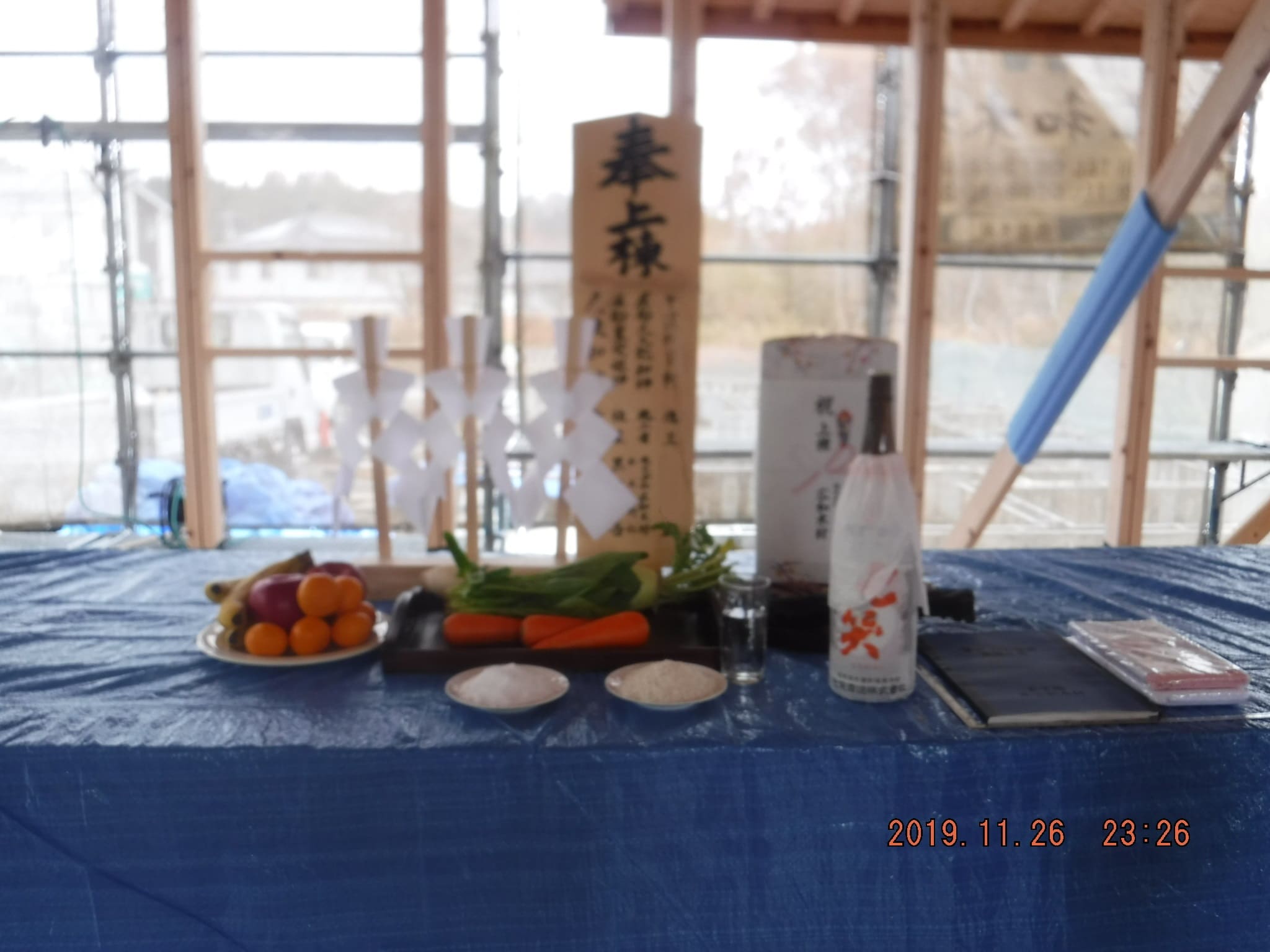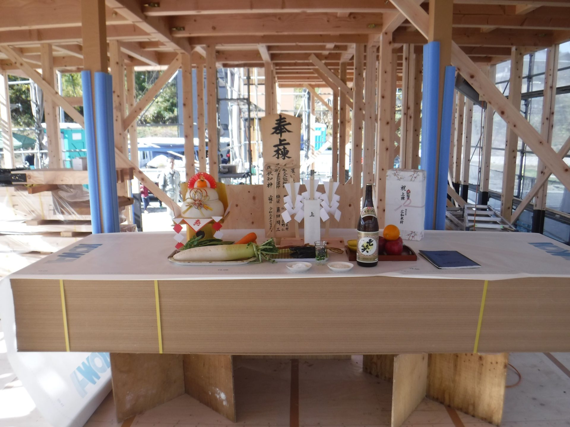 暑くもなく、寒くもなく良い気候の中、初日の大工さんたちの頑張り、無事上棟式を行うことが出来ました!