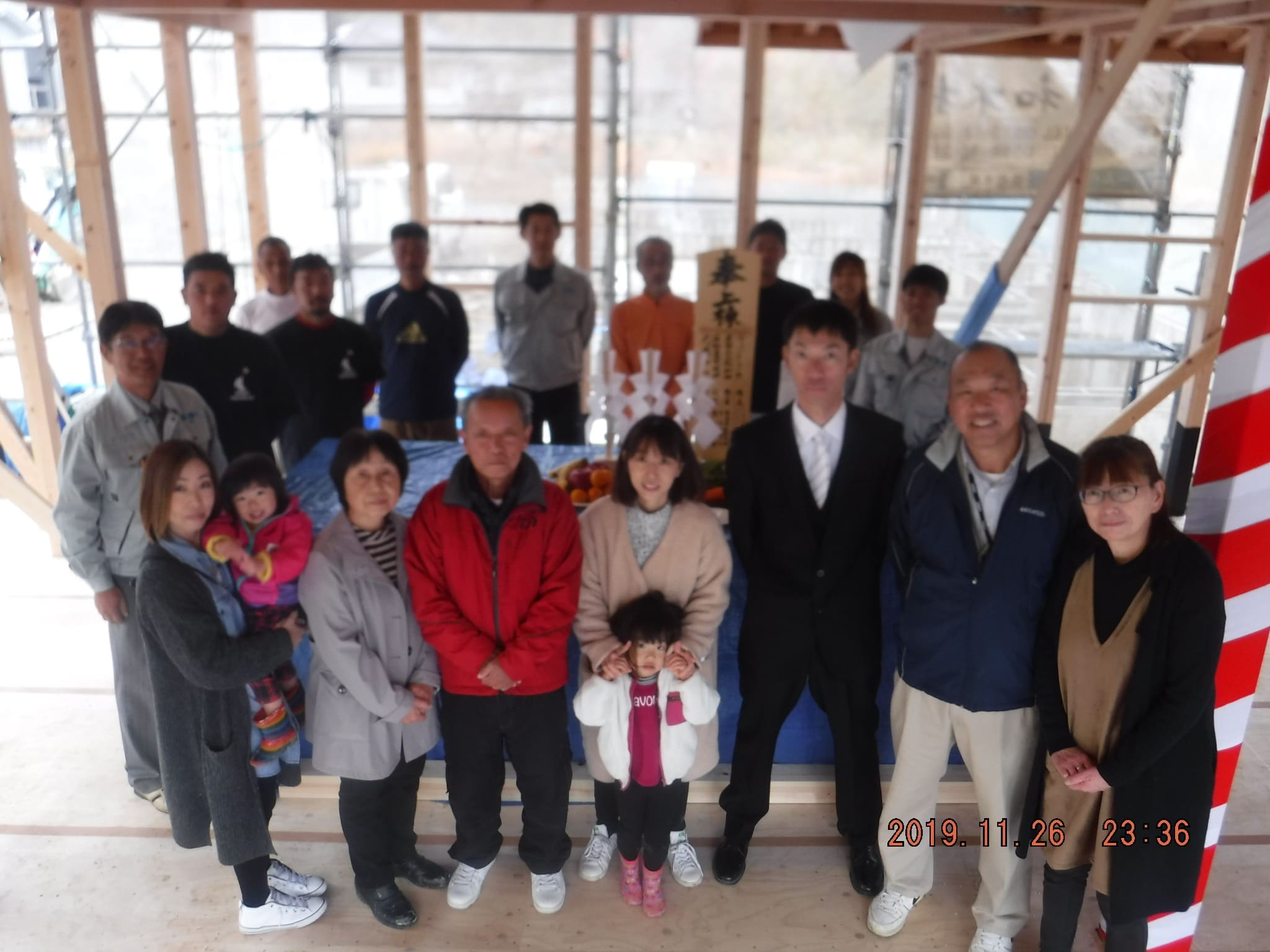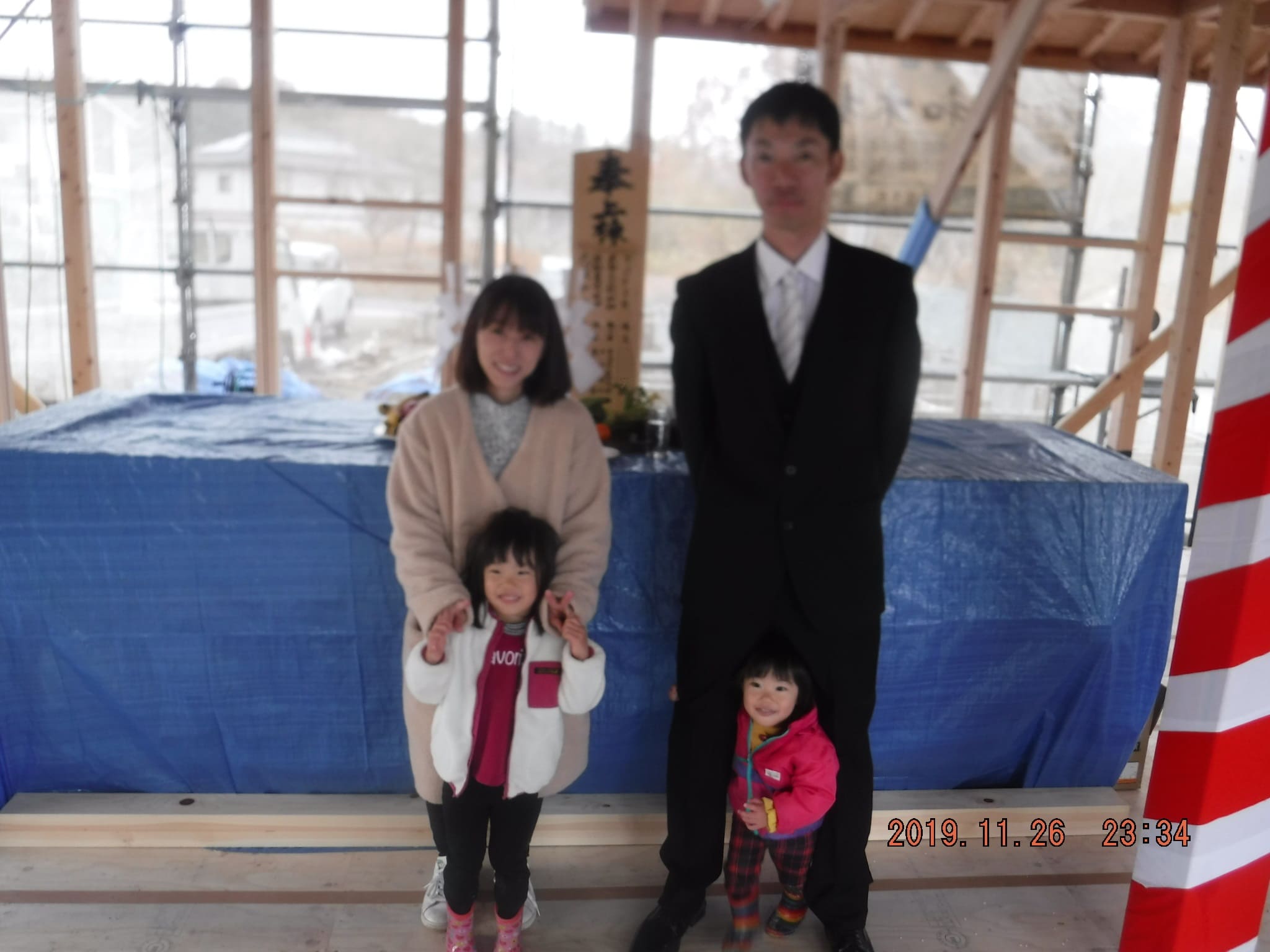 平日の上棟でしたが、遠い中H様のご両親にも来ていただきました!ありがとうございました!