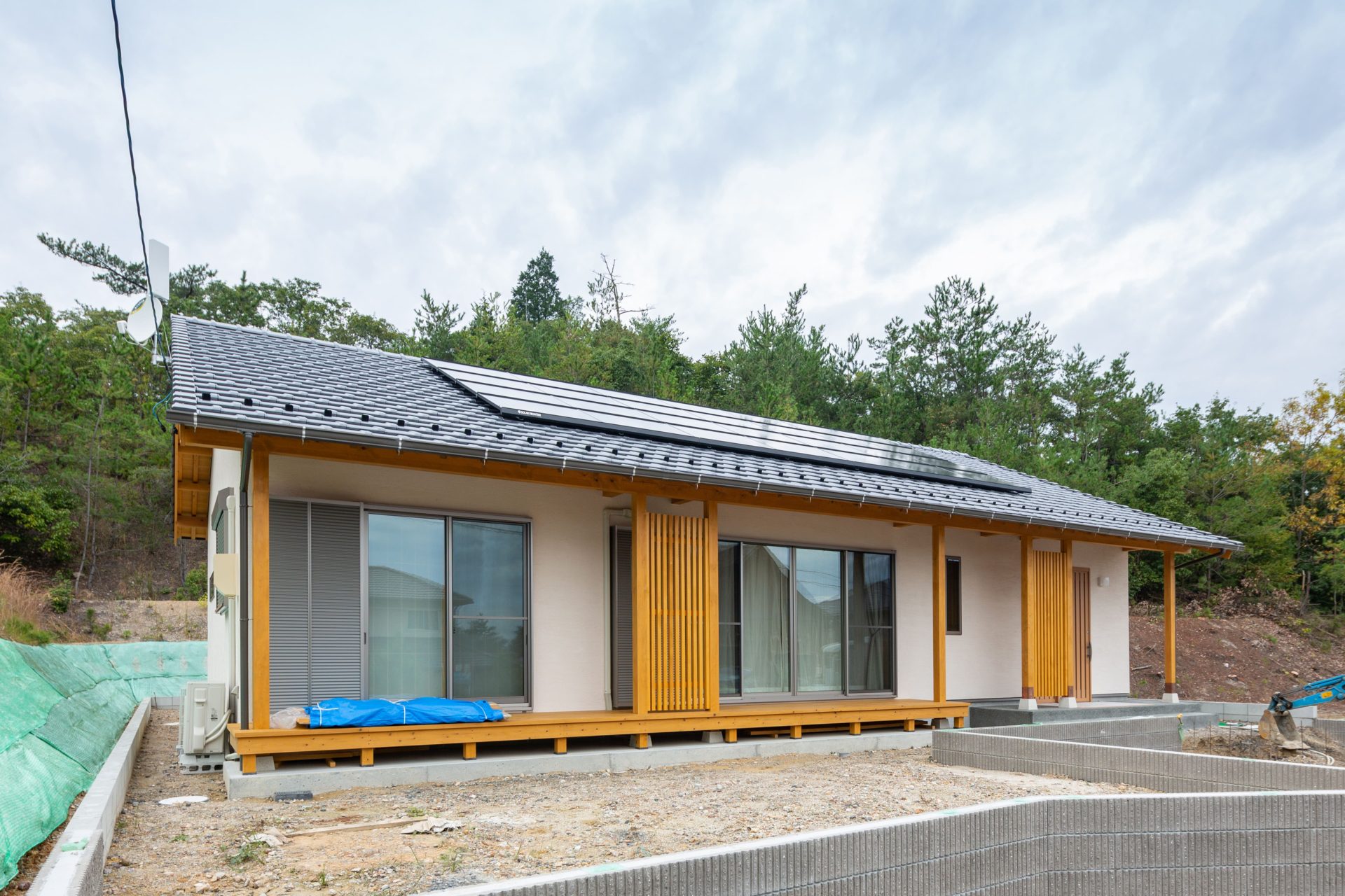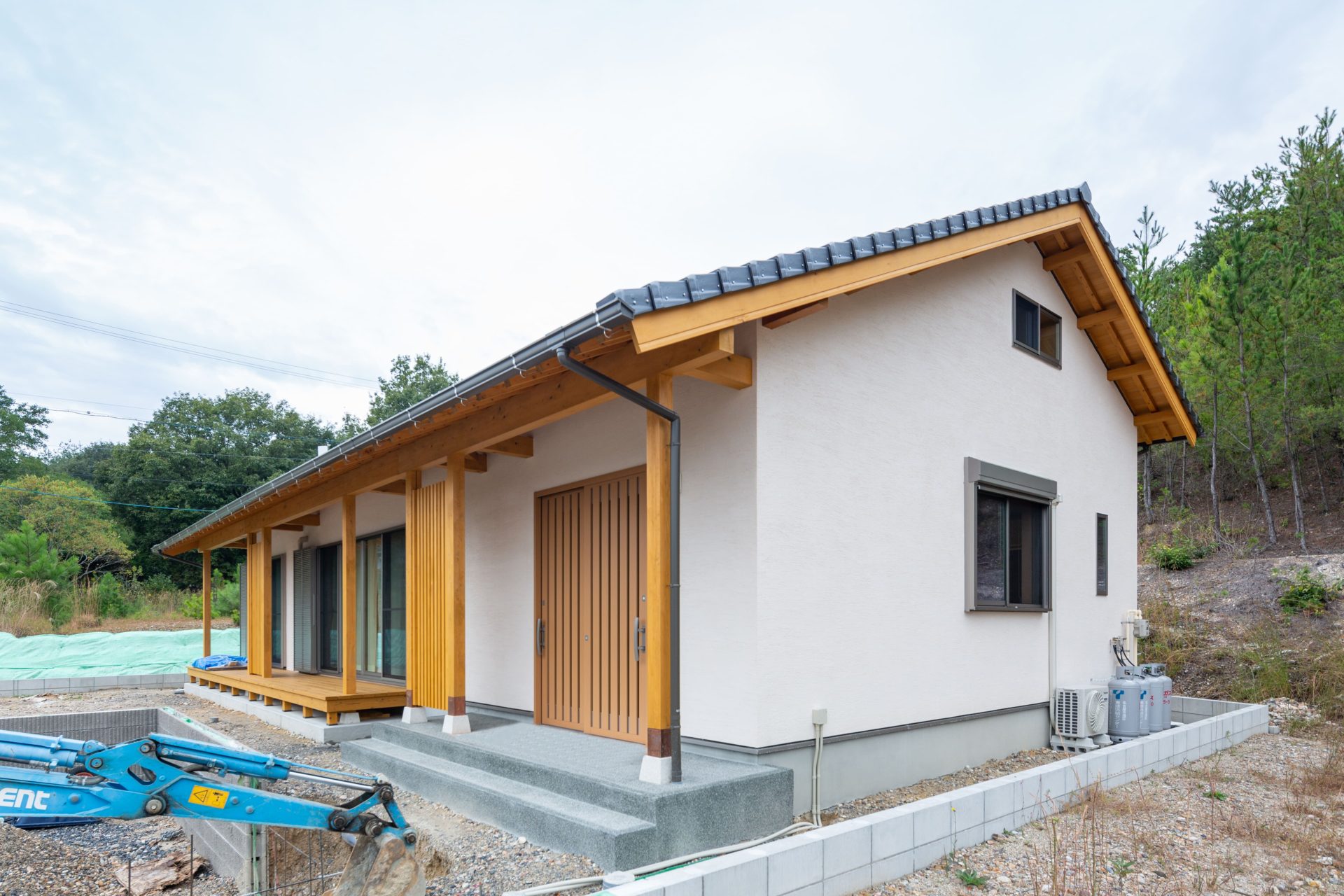 外観は、垂木を表し仕上げで施工し、温かみのあるアイボリー系のナチュラル和風な仕上げになっております。