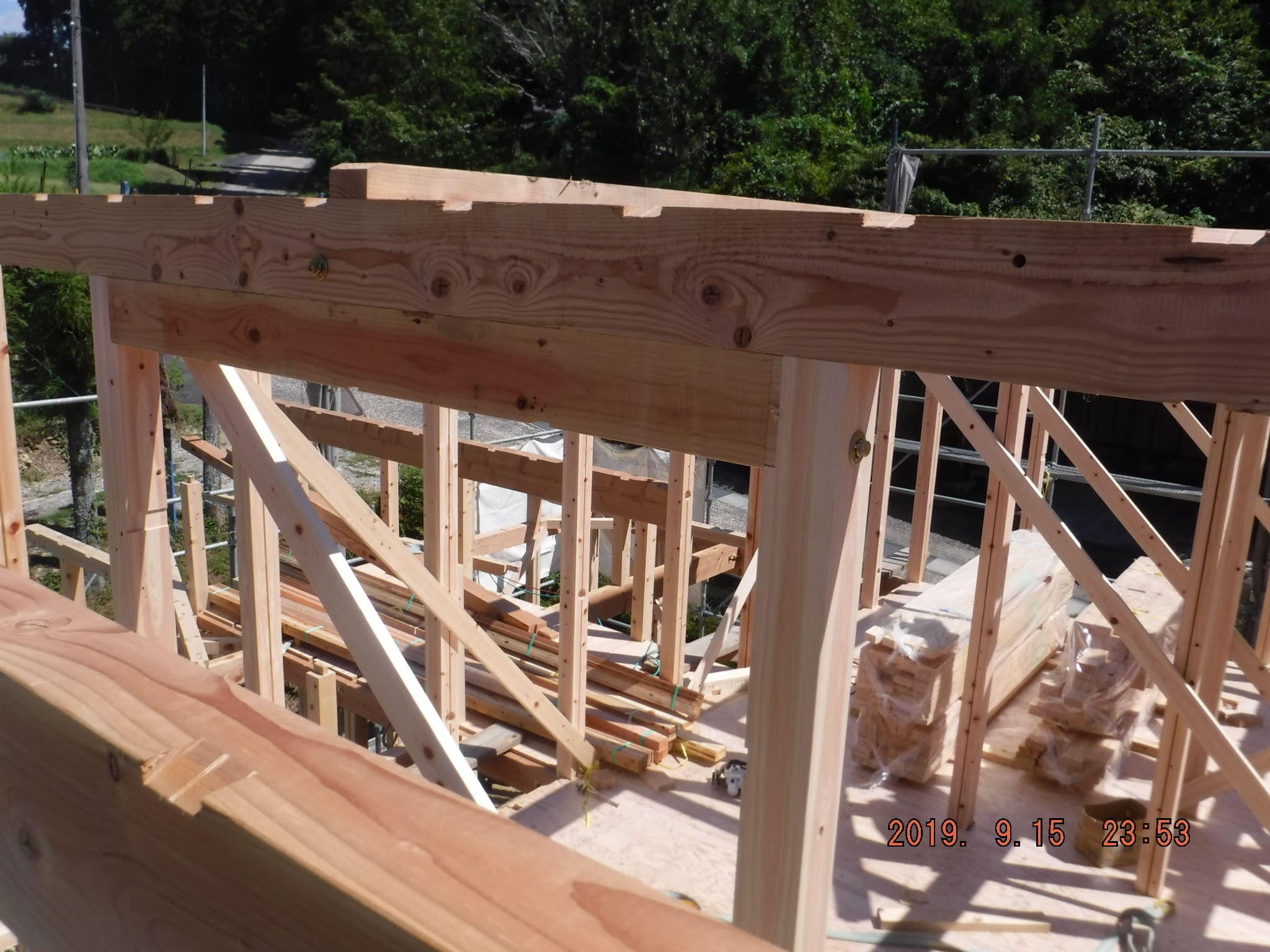 初日は、柱立より順番に進め、桁材を組み、2階の床下地を施工し順調に屋根下地まで完了しました。