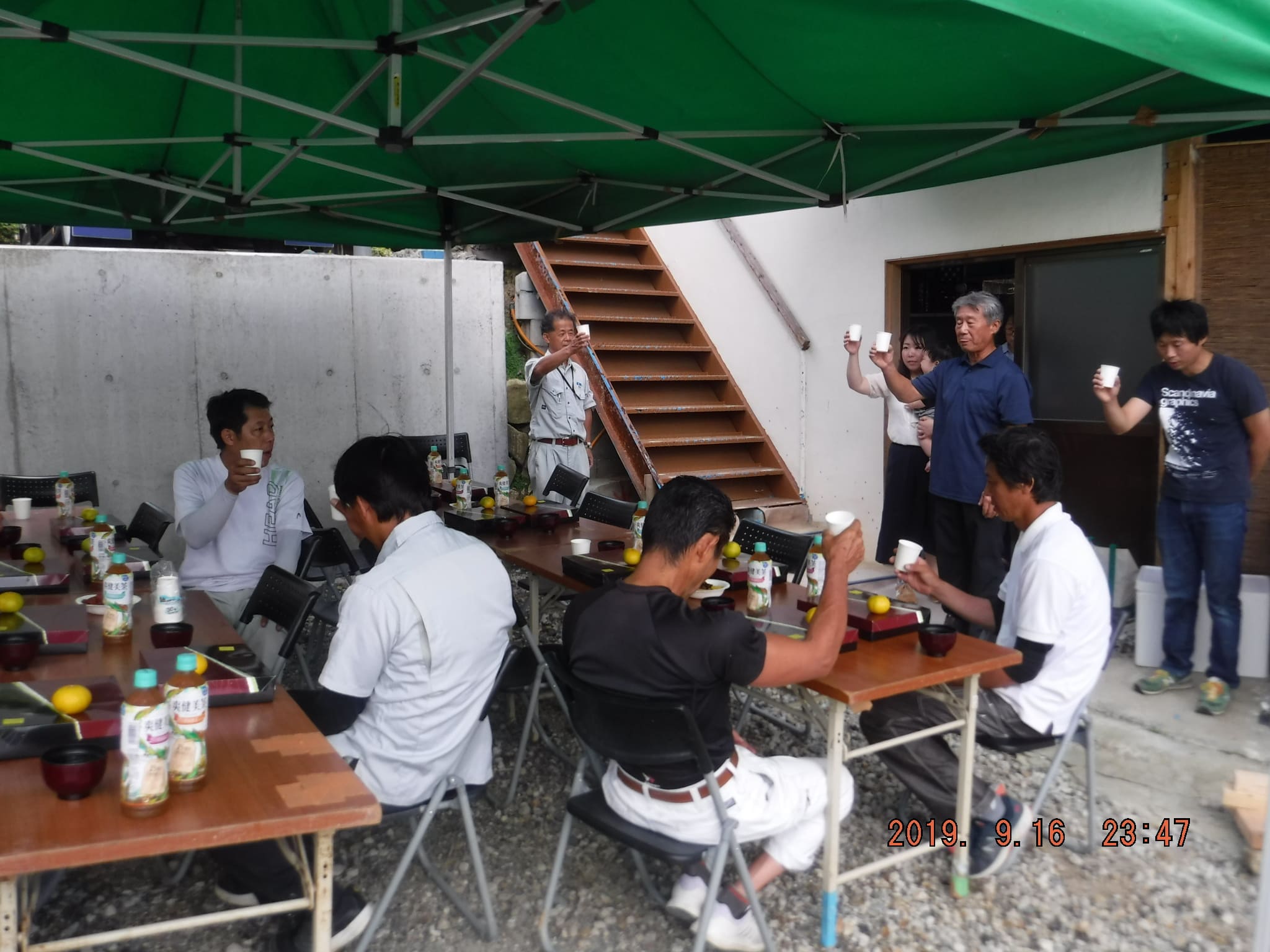 上棟式後には、御神酒で乾杯をさせて頂き、H様にご準備頂いたお弁当を皆でごちそうになりました。