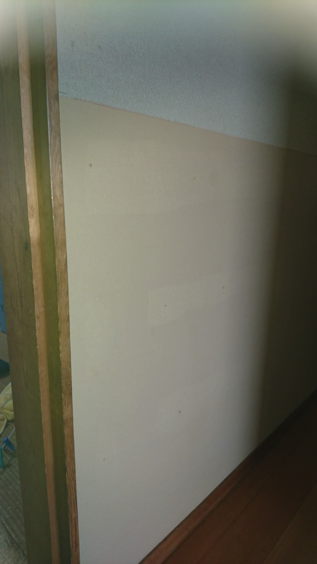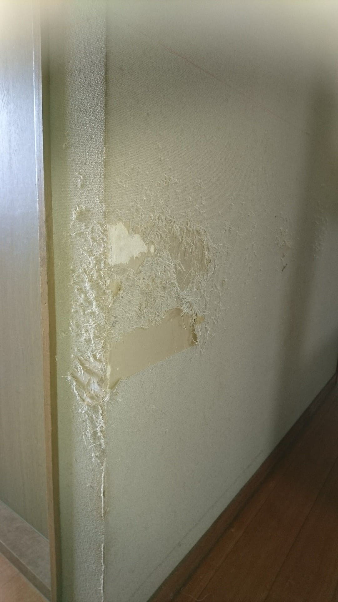 破れた部分のクロスを腰壁の高さまで剥がして準備完了。
