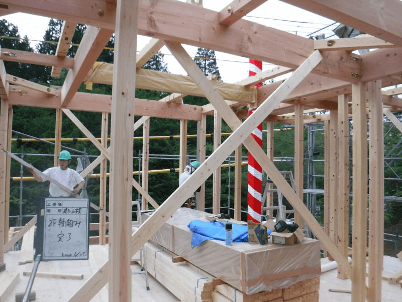 梅雨ということで、雨予報の中初日の建前は行われました。