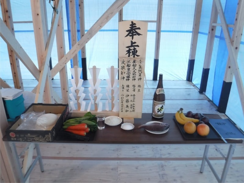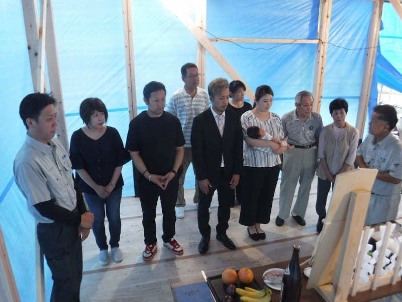 2日目の上棟本日は、雨予報のため上棟式のみ行いました。