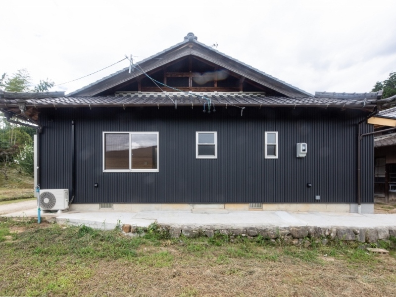 外観は、解体前の和風外観の雰囲気を壊さないよう、黒のガルバ二ウムKスパンを施工させていただきました!
