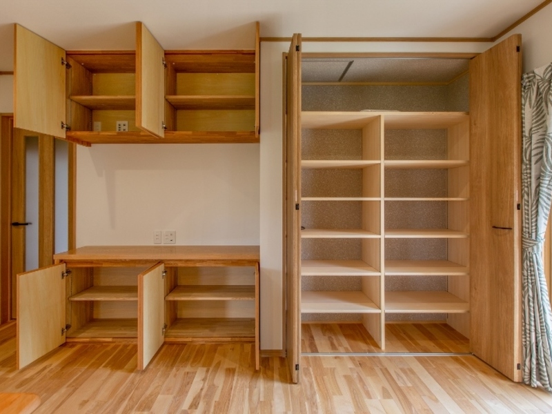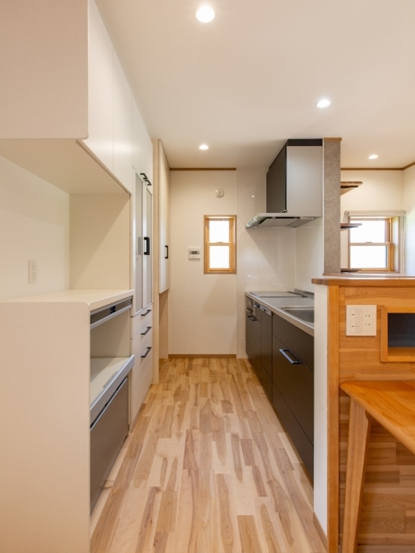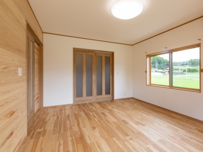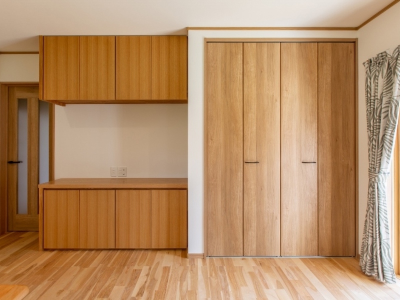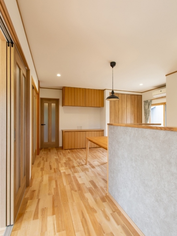 床材はカバ桜のフローリングを使用しており、ナチュラルな色合いが明るい空間をつくってくれています!