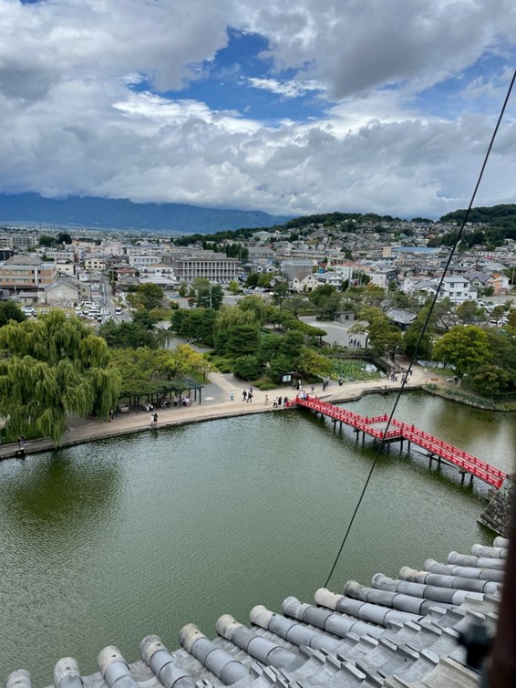 お城の周りでは「ありし日の史跡の姿みる」VRアプリの画像を見て当時の様子を想像したり、