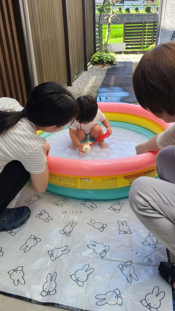 ちょうど祝日の「海の日」に合わせてビニールプールを広げ、