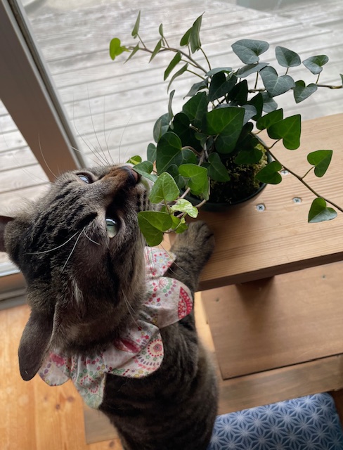 苔玉はご意見番のチェックが厳しいので、窓辺につるして愛でております。
