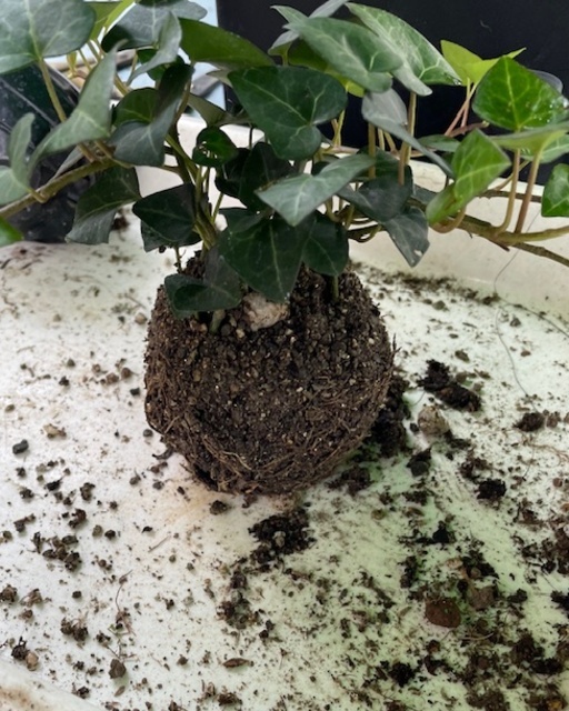 鉢から土ごと抜いて、土を丸くまとめます。